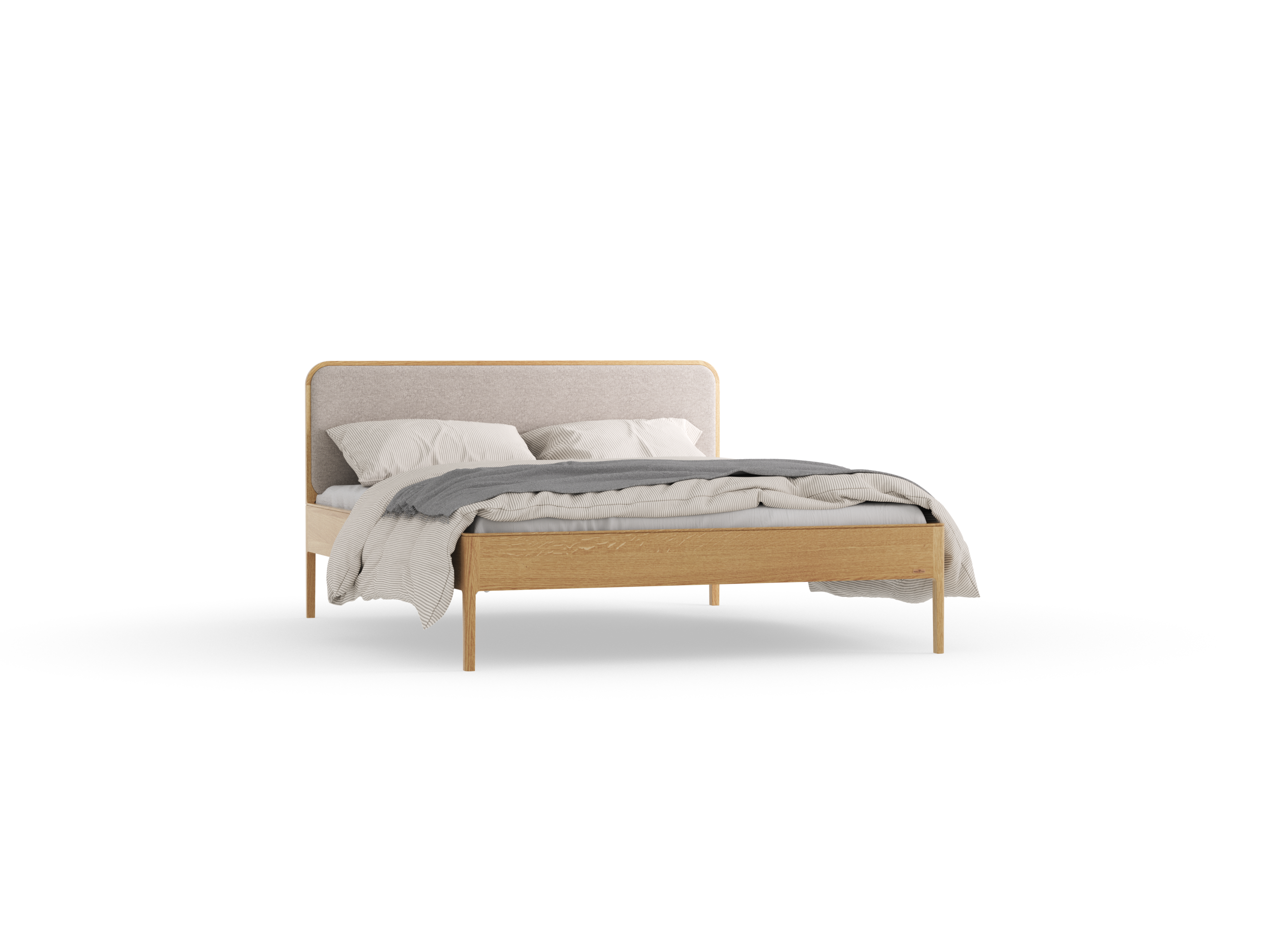 Bett Tenso mit Polsterbetthaupt, 160 x 200 cm, Wollstoff Tano Natur (79), Eiche