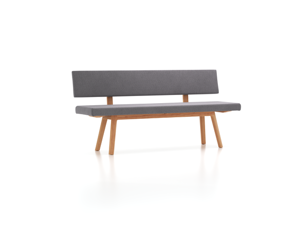 Kühner SchwungDie Bank Kilian ist ein in ästhetischer, funktioneller und handwerklicher Hinsicht sehr anspruchsvolles Möbel. Sie verbindet hohen Sitzkomfort mit zeitgemäß klaren, zurückhaltend eleganten Formen. Bei aller gebotenen Stabilität tritt die Bank in Bezug auf Proportionen, Holz- und Polsterstärken geradezu schlank und feinsinnig auf. Angenehmer Nebeneffekt: Sie lässt sich ohne großen Aufwand im Raum bewegen.Der parabelförmige (!) Querschnitt der Vorderbeine ist ein kleines, feines Designmerkmal, das die Bank mit den Beinen der anderen Kilian-Möbel gemeinsam hat.Die Polsterung ist getragen von einem optisch weichen, "handschmeichlerisch" sanft verrundeten Massivholzrahmen, der auch die Rückenlehne vollkommen umfängt und in einem kühnen Schwung in die Armlehnen übergeht. Diese sind relativ niedrig angesetzt, erleichtern damit den "Zugang" bzw. "Einstieg" zur Bank, bilden einen schönen seitlichen Abschluss und können als Auflage/Stütze für ein Kissen dienen.Im Bereich der Sitzfläche ist der Massivholzrahmen mit Hanfgurten bespannt und dann sandwichartig mit Kokoslatex, Naturlatex und Schurwollfilz gepolstert. Im Bereich der Rückenlehne findet sich derselbe Polsteraufbau, gestützt von einem Kern aus leichtem, aber verwindungsfestem Pappelsperrholz. All das zusammen verleiht der Bank einen fest-elastischen Sitzkomfort.Die bequeme Polsterung wird in unserer Produktionsstätte im Almtal (OÖ) mit dem Möbelstoff Ihrer Wahl (IVN NATURTEXTIL BEST-zertifiziert) in aufwendiger Handarbeit bezogen und mit sorgfältigen Nähten verarbeitet.Massivholzrahmen mit fix verleimten, metallfreien Holzverbindungen; leichte, verwindungsfeste Sperrholzplatte für den Kern der Rückenlehne. Holz aus nachhaltiger, mitteleuropäischer Forstwirtschaft, handwerklich sorgfältig verarbeitet, Oberflächen mit natürlichem, lösemittelfreiem Pflegeöl eingelassen. -