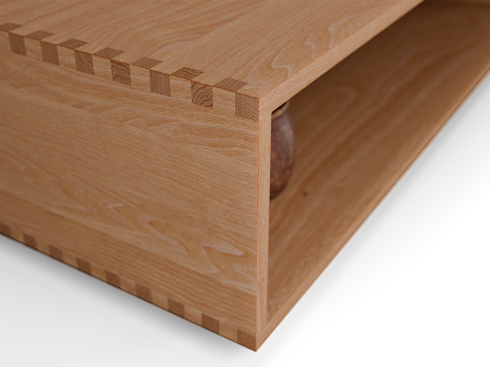 1,5 cm Massivholz, je nach Wahl Buche oder Eiche aus nachhaltiger Forstwirtschaft in Mitteleuropa, hochwertige, tischlermäßige Eckverbindungen mit fix verleimten Fingerzinken, metallfrei, mit natürlichem Holzpflegeöl auf pflanzlicher Basis (lösemittelfrei) eingelassen.