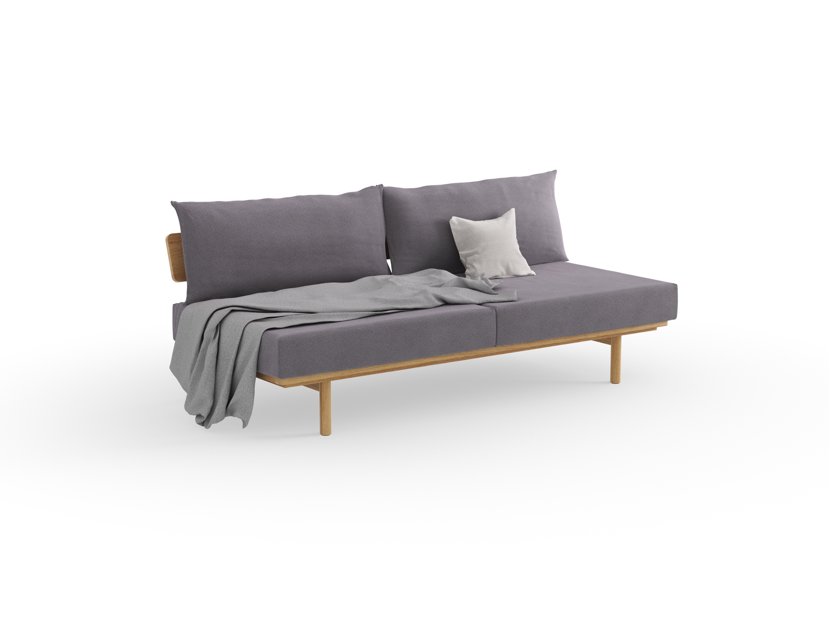 Legeres Sitzen, Liegen, LoungenDas Leitmotiv für Lana war "Reduktion auf das Wesentliche": puristische Formgebung, einfache Konstruktion und optimierter Materialeinsatz, um kostengünstiger fertigen und Ihnen einen attraktiven Preis im Einstiegsbereich bieten zu können.Gleichzeitig erfüllt das Sofa höchste Ansprüche an Qualität und ökologische Nachhaltigkeit: metallfreier Unterbau aus Massivholz, handgefertigte Polsterung, NATURTEXTIL BEST-zertifizierte, abnehmbare Bezüge aus 100 % Naturfasern.Die kleineren Lana-Modelle finden auch auf beschränktem Wohnraum, im urbanen Bereich und in Single- oder Zwei-Personen-Haushalten Platz.In der Variante "Loungesofa" erweist sich Lana als sehr flexibel: Dessen Liegeteil kann nach Belieben rechts oder links an das Sofa angedockt werden, binnen Minuten "die Seite wechseln", und auch solitär eingesetzt werden - als Tagesliege.Bereits der Anblick des von der Polsterung dominierten Sofas suggeriert informelle Bequemlichkeit. Die Grundidee – ungezwungenes Sitzen, Liegen, Loungen – kommt auch in der großzügigen Sitztiefe von 65 cm und in der Polsterstärke von 14 cm zum Ausdruck. Die schlanken Füße und die Schattenfuge zwischen dem abgestuften Unterbau und der Sitzpolsterung lassen die Polsterung etwas abgehoben erscheinen und betonen die legere Anmutung von Lana.Der formal schlichte, stabile Unterbau aus fix verleimtem Massivholz trägt einen Lattenrost mit elastischen Federleisten. Auf diesem ruht lose die Sitzpolsterung. Die Rückenpolster lehnen an einem breiten Massivholzsteg, der dem Sofa eine schöne Rückenansicht verleiht.Polsterung und abnehmbare BezügeDie in unserer Textilwerkstätte gefertigte, sandwichartig aufgebaute Polsterung besteht aus fest-elastischem Kokoslatex, weichem Naturlatex und Schafschurwollvlies. Sie ist mit einer "Weißpolsterung" aus Baumwollstoff fix bezogen. Darüber kommt der abnehmbare Sofabezug. Für diesen können Sie aus einer Vielzahl von NATURTEXTIL BEST-zertifizierten Naturgeweben auswählen.Separat bestellbar: lose Armlehne, B 26 x T 51 x H 16 cm, auch als Kopfkissen verwendbar. -