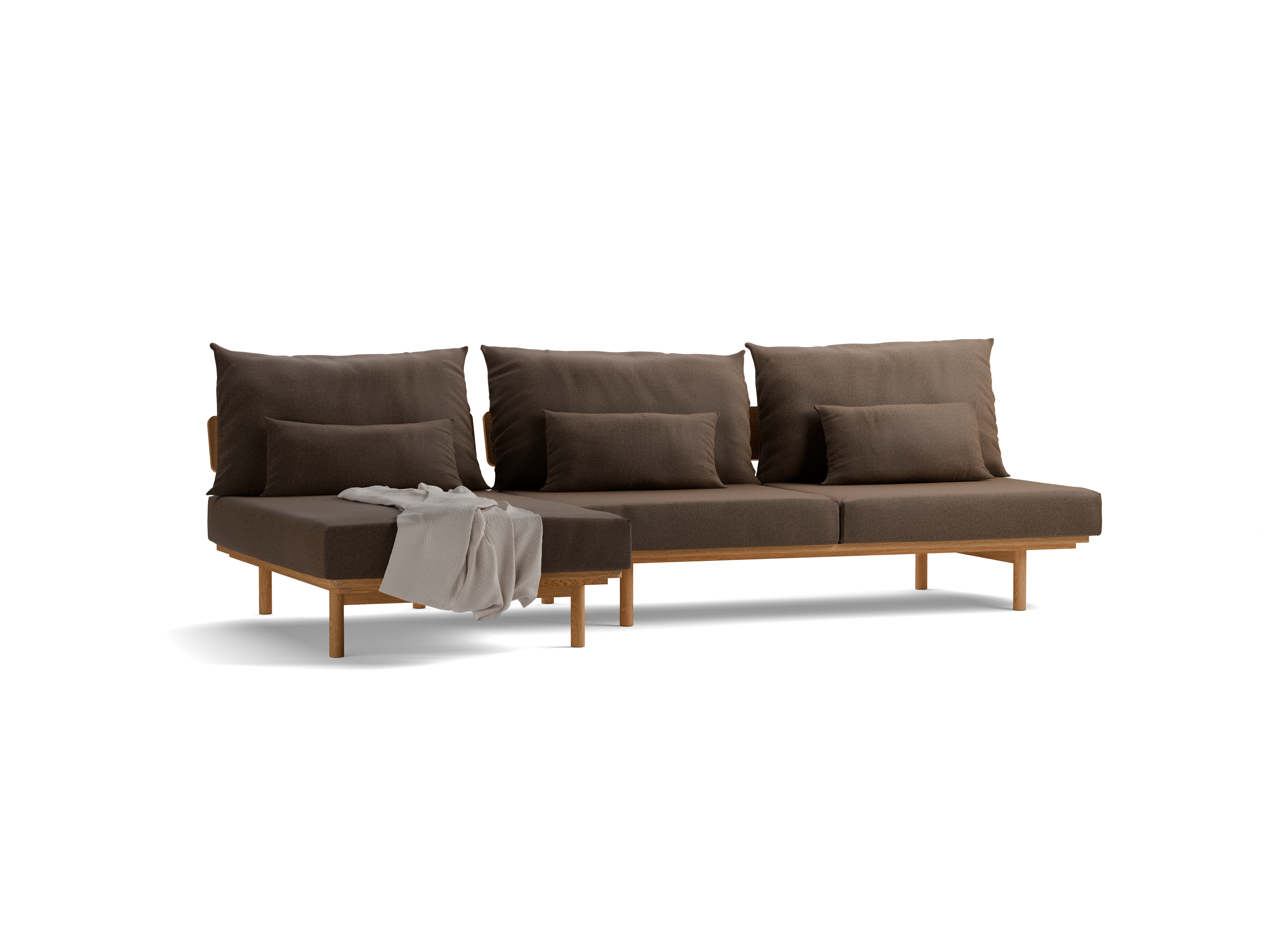 Loungesofa Lana, 300 x 160 cm mit Liegeteil links/rechts, Wollstoff Tano Natur Dunkel (81), Eiche