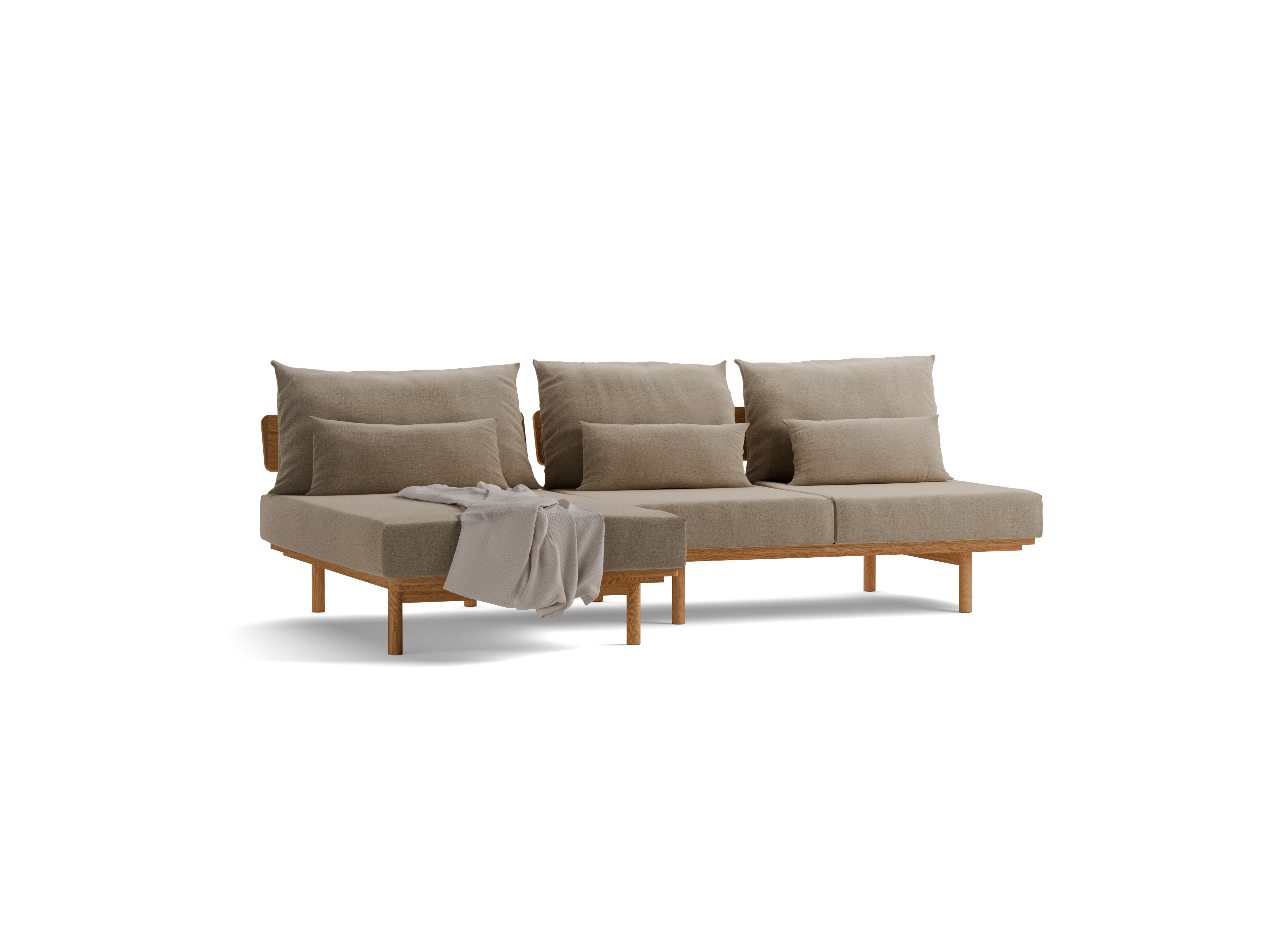 Loungesofa Lana, 260 x 160 cm mit Liegeteil links/rechts, Wollstoff Stavang Sand (66), Eiche