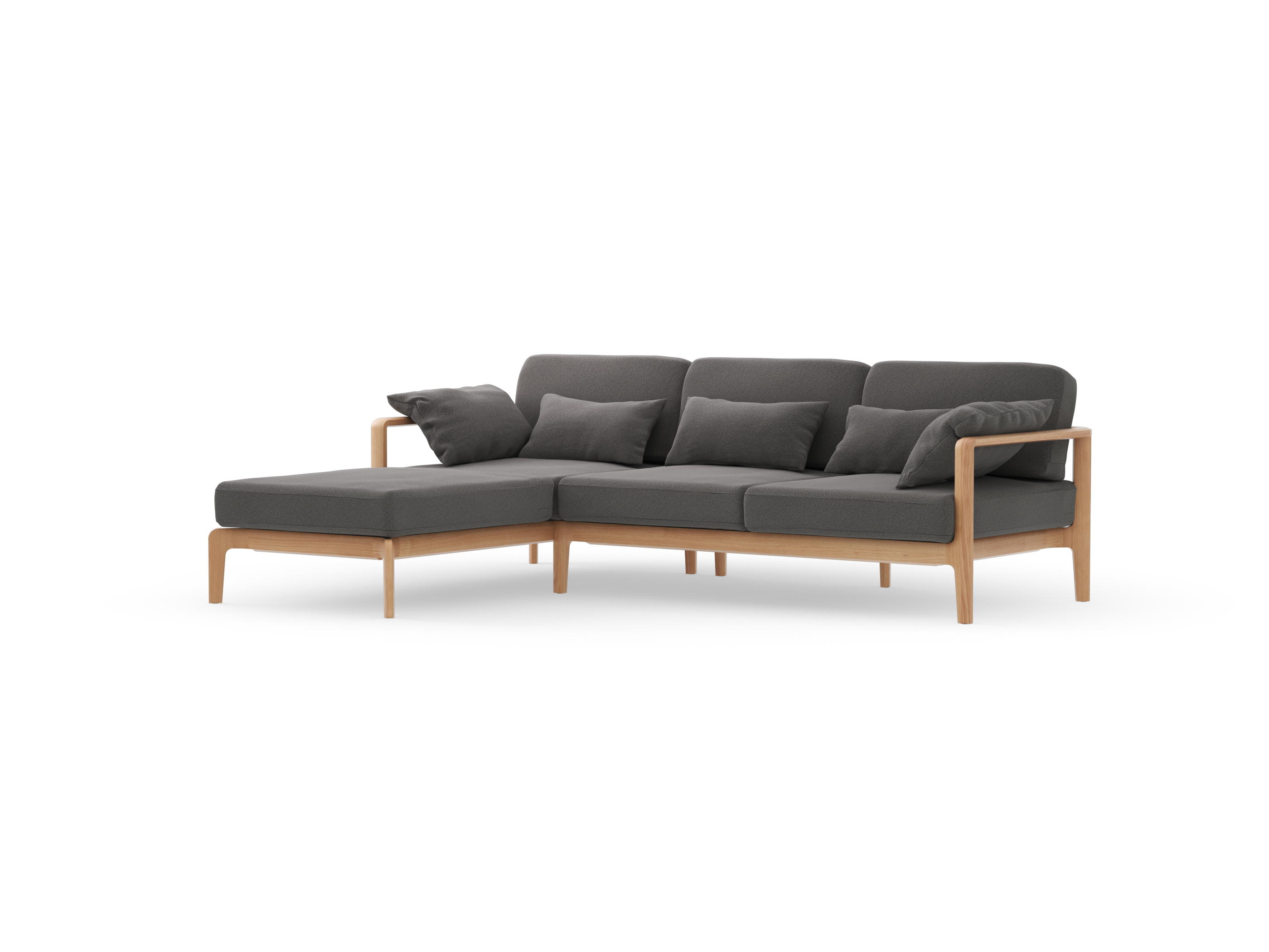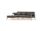 Loungesofa Linera, schmal mit Liegeteil links, Baumwollstoff Barra Schiefer (97), Buche