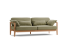 Der elegante, schlanke, feinsinnige Sofarahmen aus fix verleimtem Massivholz – mit sanften, verrundeten, fließenden Übergängen und Verbindungen – umfängt die Polsterelemente relingartig und gibt dem Sofa auch eine reizvolle Rückenansicht.-