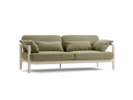 Der elegante, schlanke, feinsinnige Sofarahmen aus fix verleimtem Massivholz – mit sanften, verrundeten, fließenden Übergängen und Verbindungen – umfängt die Polsterelemente relingartig und gibt dem Sofa auch eine reizvolle Rückenansicht.-