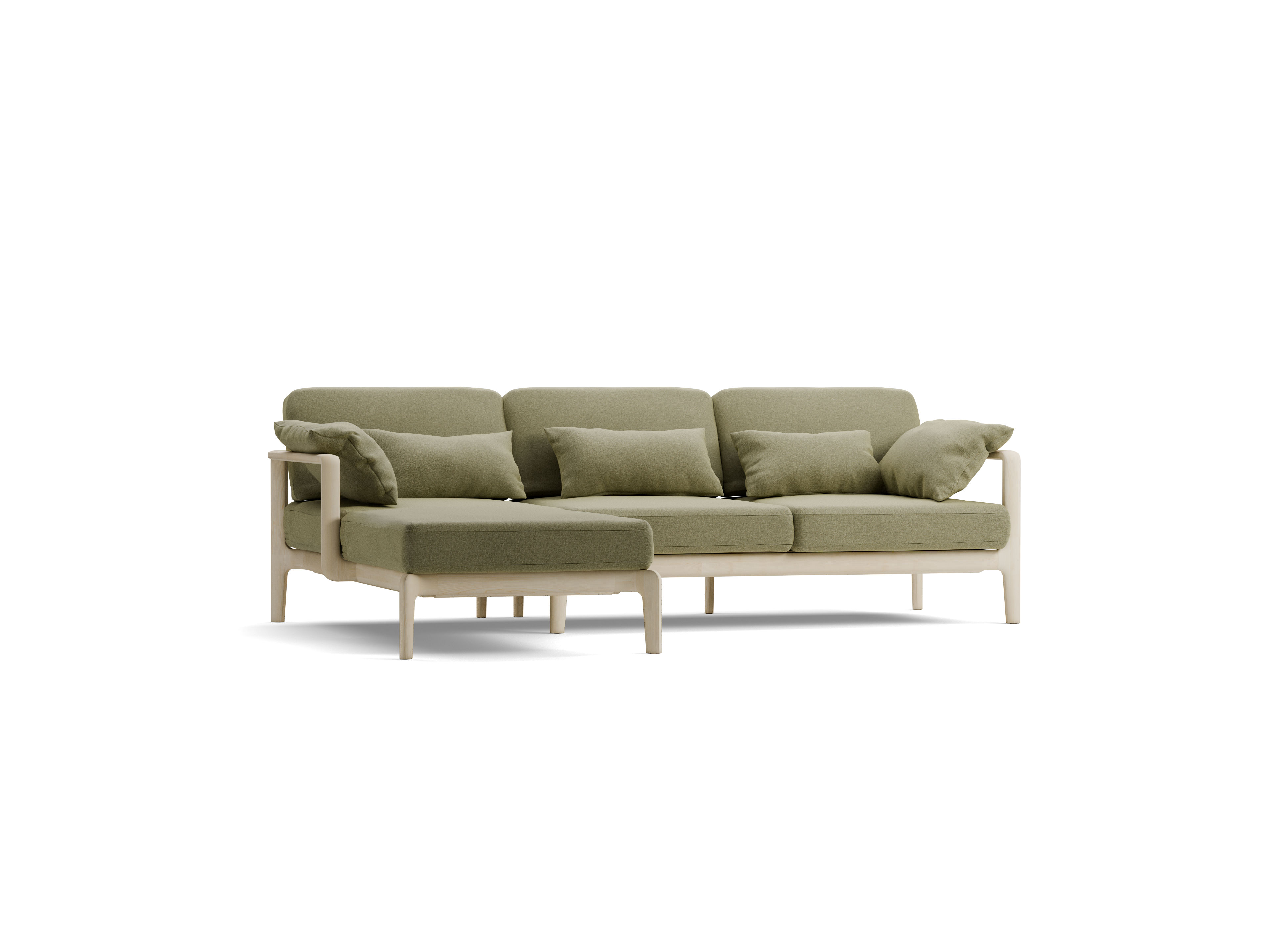 Loungesofa Linera, schmal mit Liegeteil links, Wollstoff Kaland Farn (117), Esche