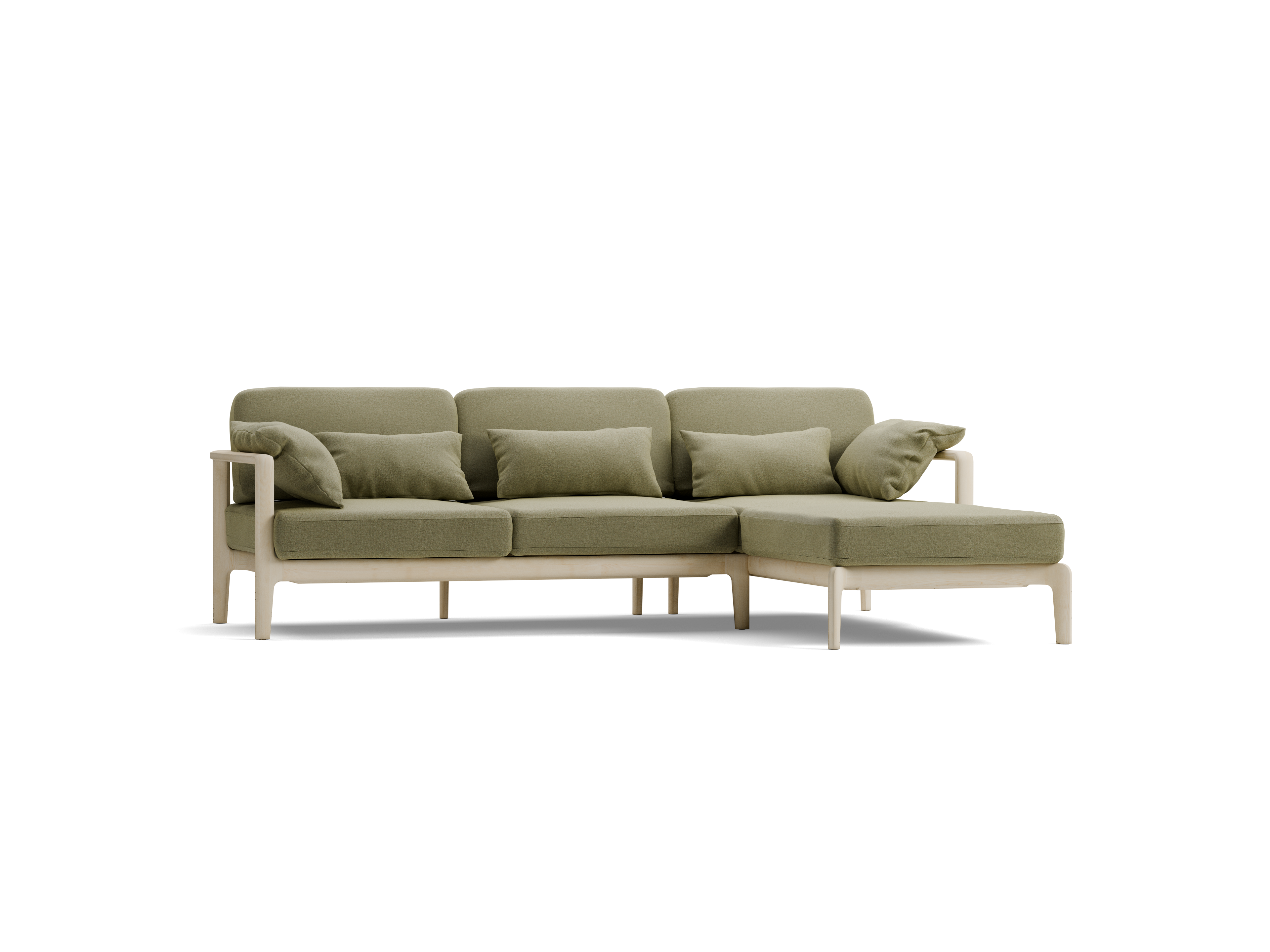 Loungesofa Linera, schmal mit Liegeteil rechts, Wollstoff Kaland Farn (117), Esche