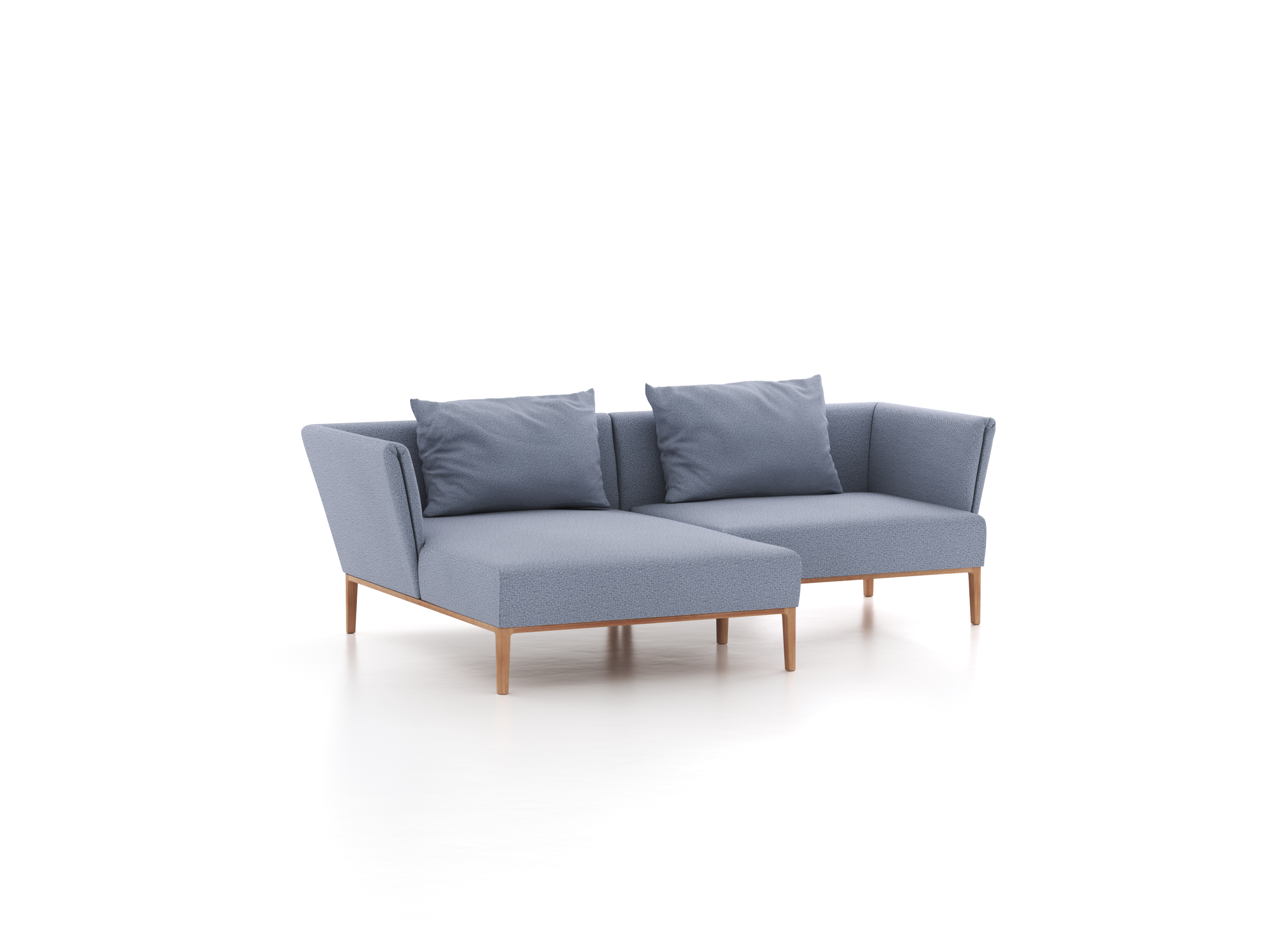 Lounge-Sofa Lorea, Liegeteil links, inkl. 2 Kissen (60x85 cm), B 240 x T 155 cm, mit Bezug Wollstoff Elverum Ozean (75), Eiche