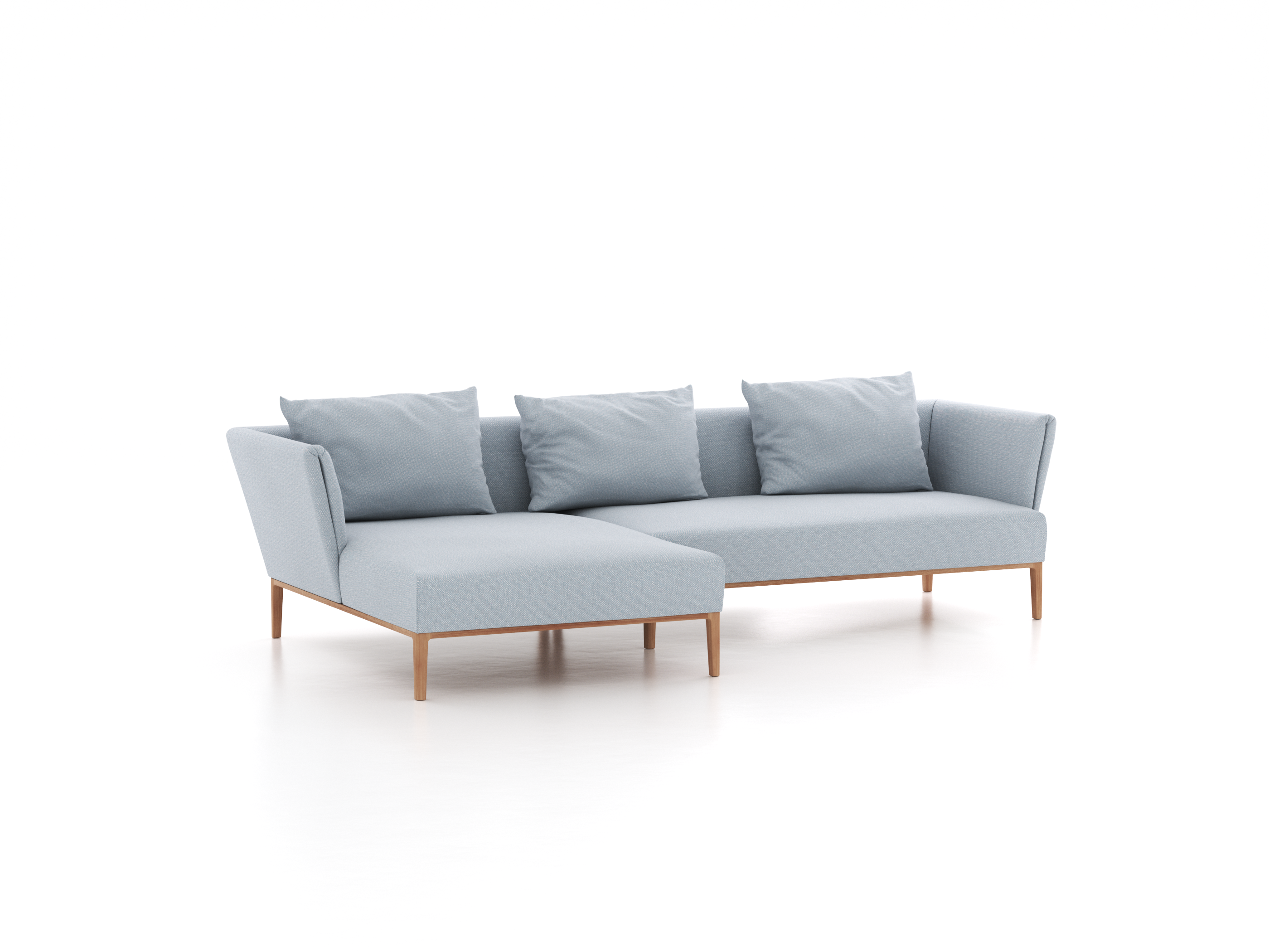 Lounge-Sofa Lorea, Liegeteil links, inkl. 3 Kissen (60x85 cm), B 295 x T 155 cm, mit Bezug Wollstoff Elverum Blaugrau (83), Eiche