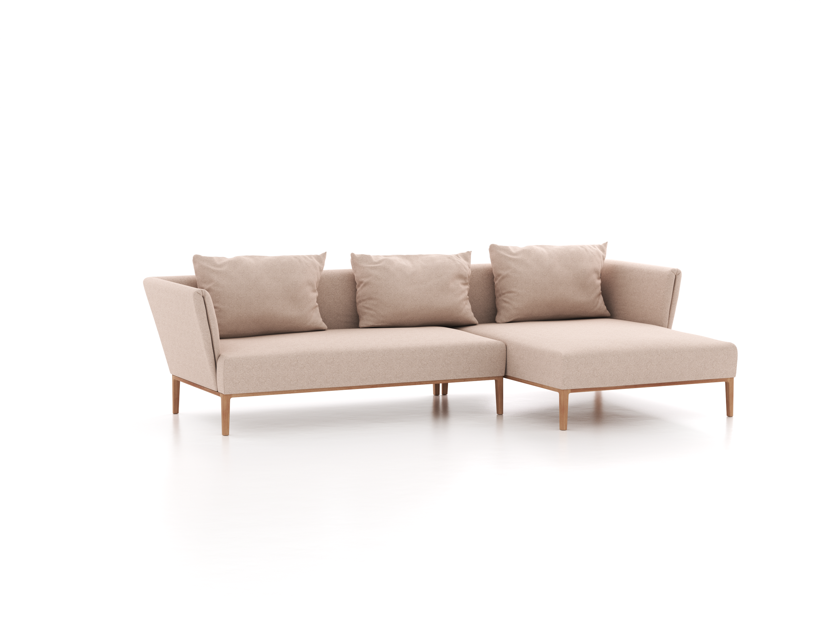 Lounge-Sofa Lorea, Liegeteil rechts, inkl. 3 Kissen (60x85 cm), B 295 x T 155 cm, mit Bezug Wollstoff Stavang Haselnuss (65), Eiche