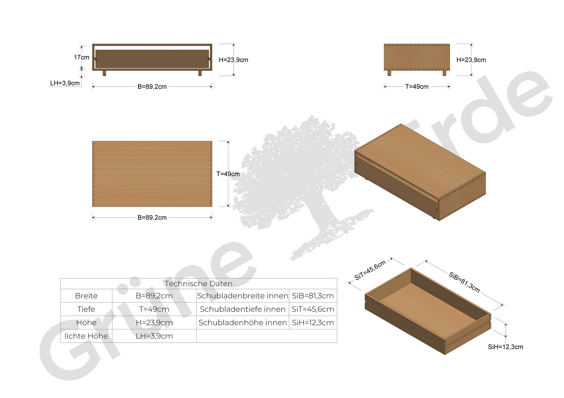 Massivholz aus nachhaltig bewirtschafteten Wäldern, handwerklich erstklassig verarbeitet; fixverleimte Fingerzinken; von Hand geölte Holzoberfläche.-