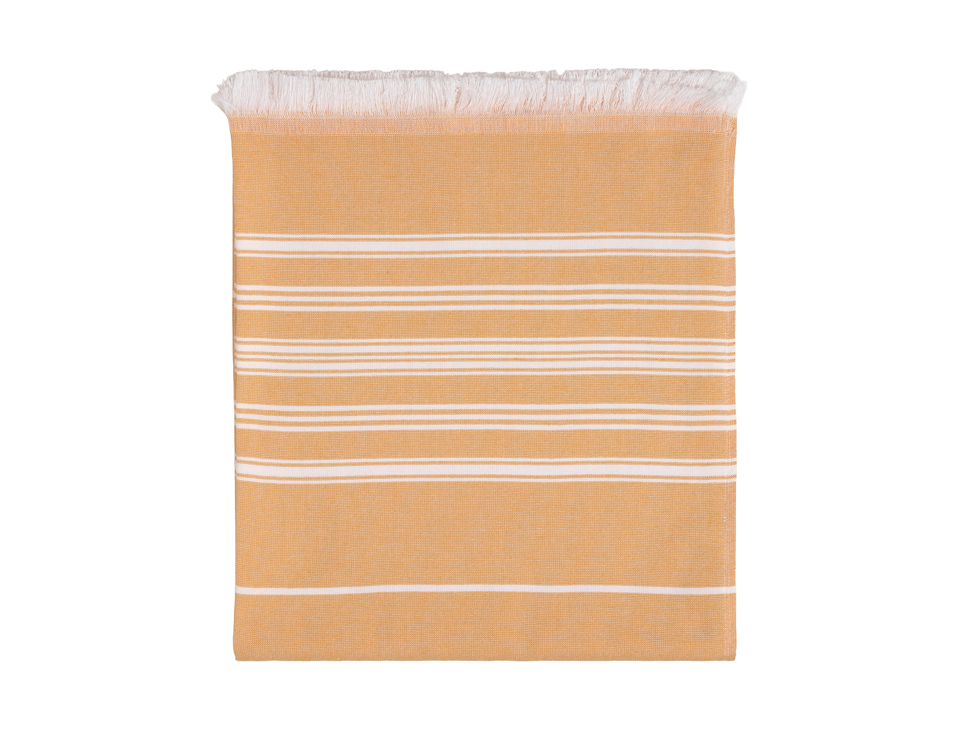 Hochwertiges Strand- und Saunatuch aus reiner Bio-Baumwolle: Das Naturprodukt wird sorgfältig im Waldviertel nach dem strengen Global Organic Textile Standard gewebt und zeichnet sich durch seine leichte Doubleface-Qualität aus. Die Vorderseite ist farbig gewebt, während die Rückseite mit saugfähigem Zwirnfrottee in Natur überzeugt. Zarte Fransen runden das Strand- und Saunatuch harmonisch ab.