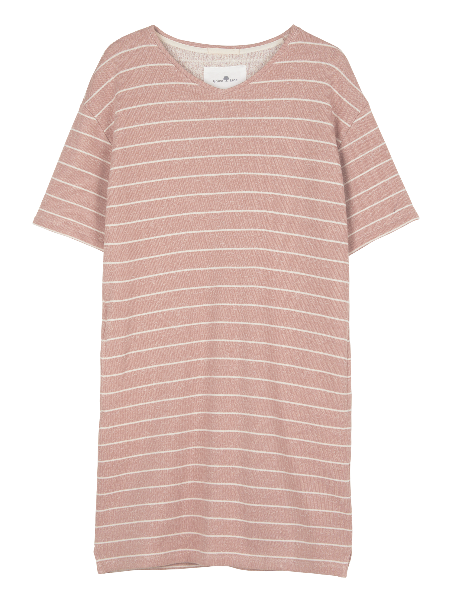 Pure Leichtigkeit für den TagLässig geschnittenes Sweatshirt-Kleid mit Ringel-Dessinierung in dezenter Melange-Optik. Der V-Ausschnitt und die kurzen Ärmel unterstreichen den entspannten Boxy-Schnitt, während die weiche French-Terry-Qualität für angenehmen Tragekomfort sorgt. Weitere Details: praktische Aufhängung im Innenteil und kleine Seitenschlitze am Saum.Schnitt: oversize/knieumspielend. In Größe S (36/38) ca. 90 cm lang. Unsere Models sind zwischen 175 cm und 177 cm groß und tragen Kleidergröße S.Ökologisch & fair produziertEin schönes Stück Natur, welches wir nur zu gern tragen. Dieses Kleidungsstück entsteht aus Baumwolle kbA und wird nach strengen Richtlinien – wie dem Global Organic Textile Standard – bei unserem Partnerbetrieb gefertigt.Material: 100 % Baumwolle.Materialherkunft: Baumwolle kbA aus der Türkei. Gewirkt in der Türkei. Gefertigt in der Türkei nach dem GOTS. -