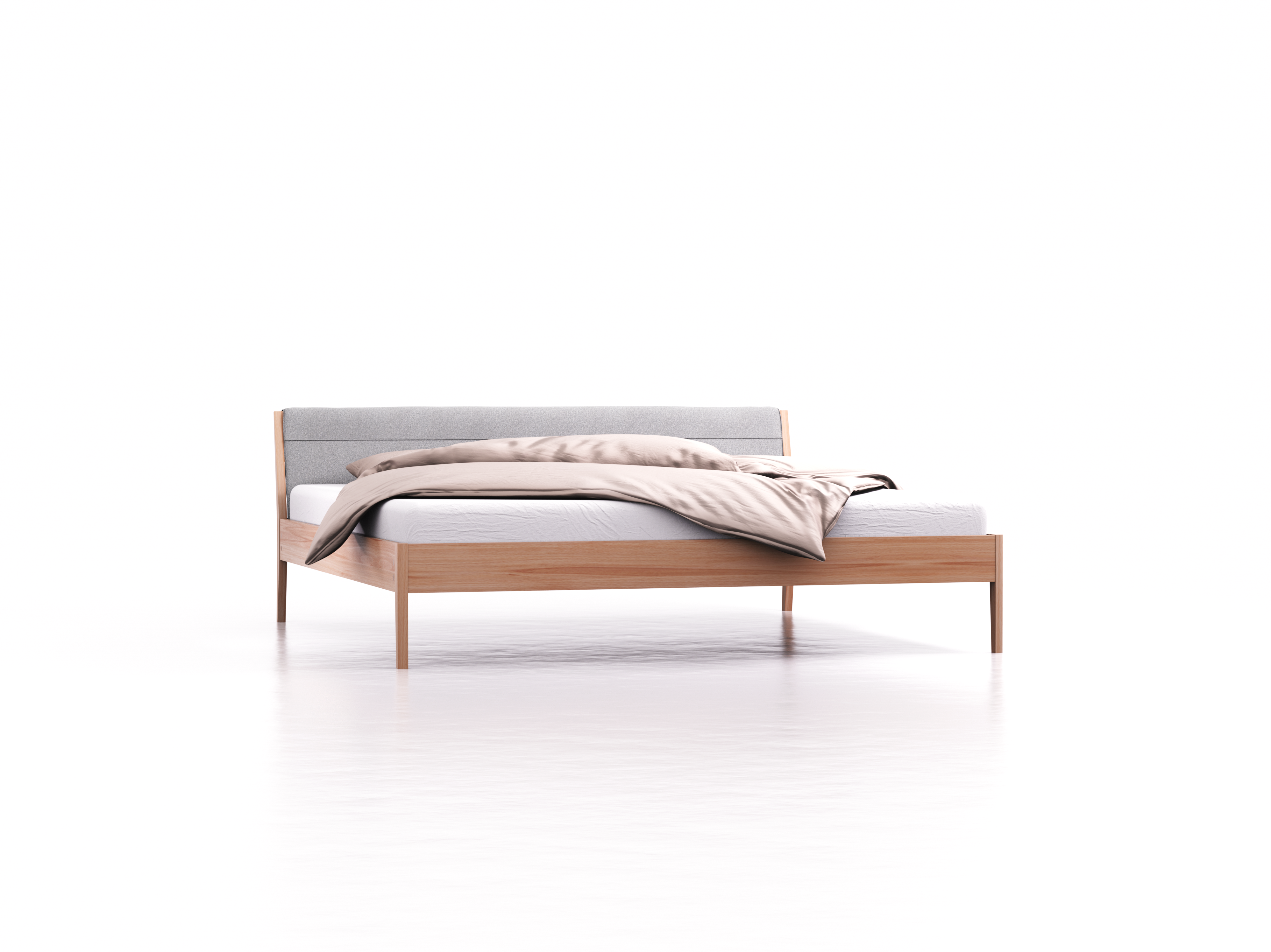 So einfach wie möglich, aber nicht einfacherAlmeno ist preisgünstig und erfüllt gleichzeitig hohe Ansprüche an Qualität, Design und Funktionalität. Die Grundidee des Bettes zeigt sich an der Reduktion auf das Wesentliche: kein Zentimeter Holz zu wenig, kein Gramm zu viel.Wir fertigen Almeno in verschiedenen Holzarten – immer aber aus Massivholz aus Europa. Passgenaue, bei Bedarf wieder lösbare, metallfreie Holzsteckverbindungen: Das Bett lässt sich ohne Qualitäts- und Funktionsverlust wiederholt zerlegen.Für den Betthauptbezug kann aus einer Vielzahl an NATURTEXTIL BEST-zertifizierten Möbelstoffen aus Schurwolle gewählt werden.Die Holz-Oberfläche ist von Hand mit natürlichem, duftendem, lösemittelfreiem Pflegeöl eingelassen.Preis, inkl. Aufstellservice, ohne Lattenrost, Matratze und Zubehör. -