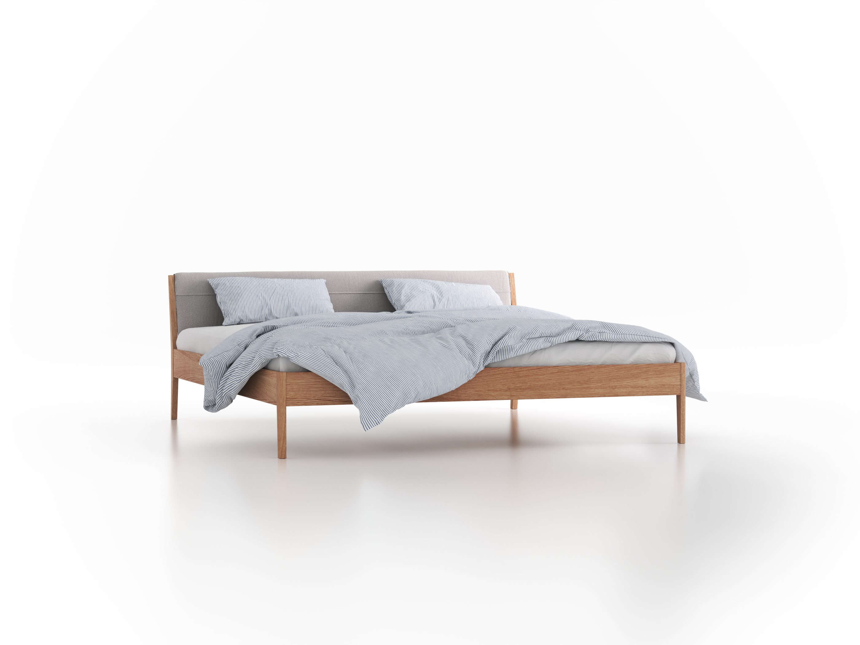 Bett Almeno mit Polsterbetthaupt, 200 x 210 cm, Wollstoff Elverum Mocca (73), Eiche