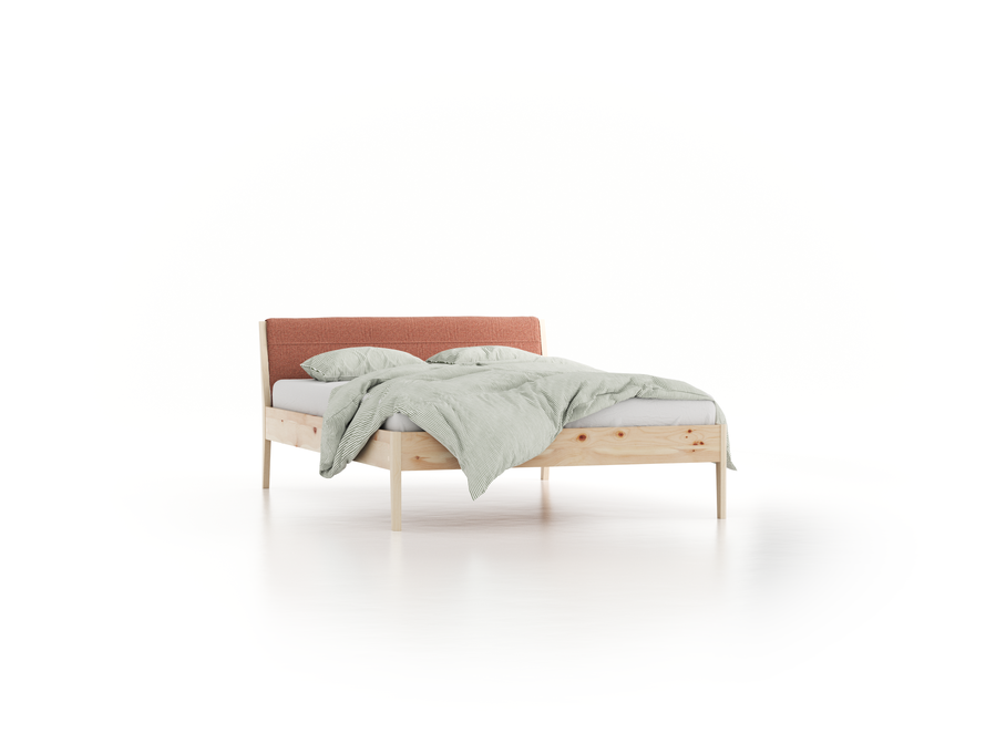 Bett Almeno mit Polsterbetthaupt, 140 x 200 cm, Wollstoff Elverum Ziegel (85), Zirbe