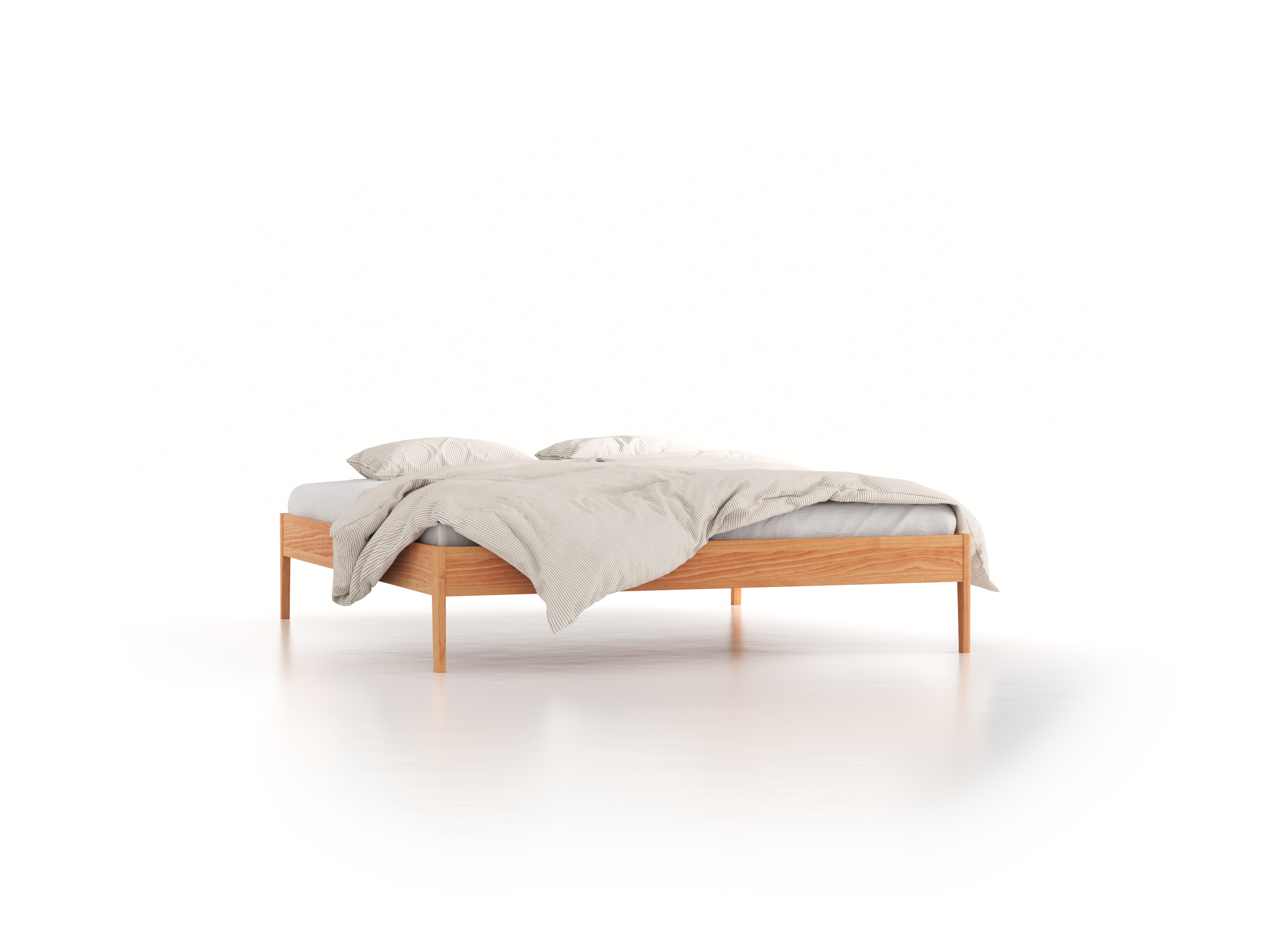 Schlicht und einfach "basic"Almeno ist das beliebteste Bett von Grüne Erde. Auch, weil es unser vielfältigstes ist. Sie können es in mehreren Holzarten, mit verschiedenen Betthäuptern und als Polsterbett wählen. Oder wie hier schlicht und einfach "basic" – ohne Betthaupt.Von der formalen Schlichtheit dieses Bettes sollte man sich nicht täuschen lassen: Es erfüllt alle hohen Anforderungen an ein Grüne Erde-Möbel: 100 % nachwachsende Naturmaterialien, hohe Qualität, sorgfältiges Handwerk, Langlebigkeit.Almeno kann jederzeit mit praktischen, auf den Bettrahmen steckbare Ablageboxen ergänzt werden.Material & FertigungDas hochwertige, dauerhafte Massivholz für Almeno stammt aus mitteleuropäischen, nachhaltig bewirtschafteten Wäldern. Die Teile des Bettes werden von passgenauen, bei Bedarf wieder lösbaren Holzsteckverbindungen fest zusammengehalten. Dank dieser metallfreien Lasche-und-Dübel-Verbindungen lässt sich Almeno ohne Qualitäts- und Funktionsverlust wiederholt zerlegen und wieder zusammenbauen – ganz im Sinne der langen Nutzungsdauer des Bettes.Die Holzoberfläche ist von Hand mit duftendem, natürlichem Pflegeöl (lösemittelfrei) eingelassen. Zirbe bleibt vollständig unbehandelt, damit der charakteristische Duft dieser Holzart gut zur Geltung kommt.Hinweis: Preis inklusive Aufstellservice, ohne Lattenrost, Matratze und Zubehör. -