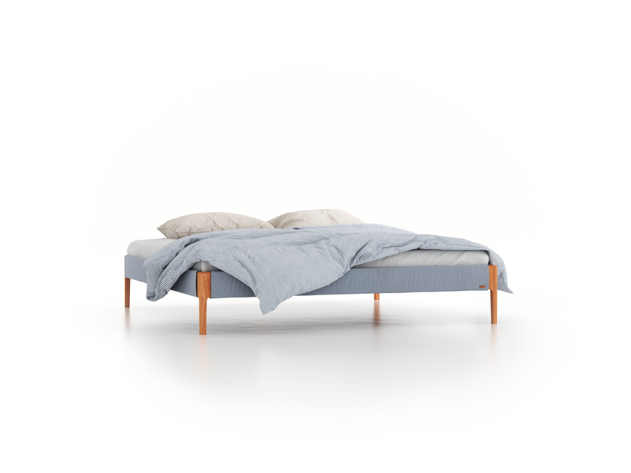 Bett Lorea ohne Betthaupt, 200 x 200 cm, Wollstoff Elverum Blaugrau (83), Buche