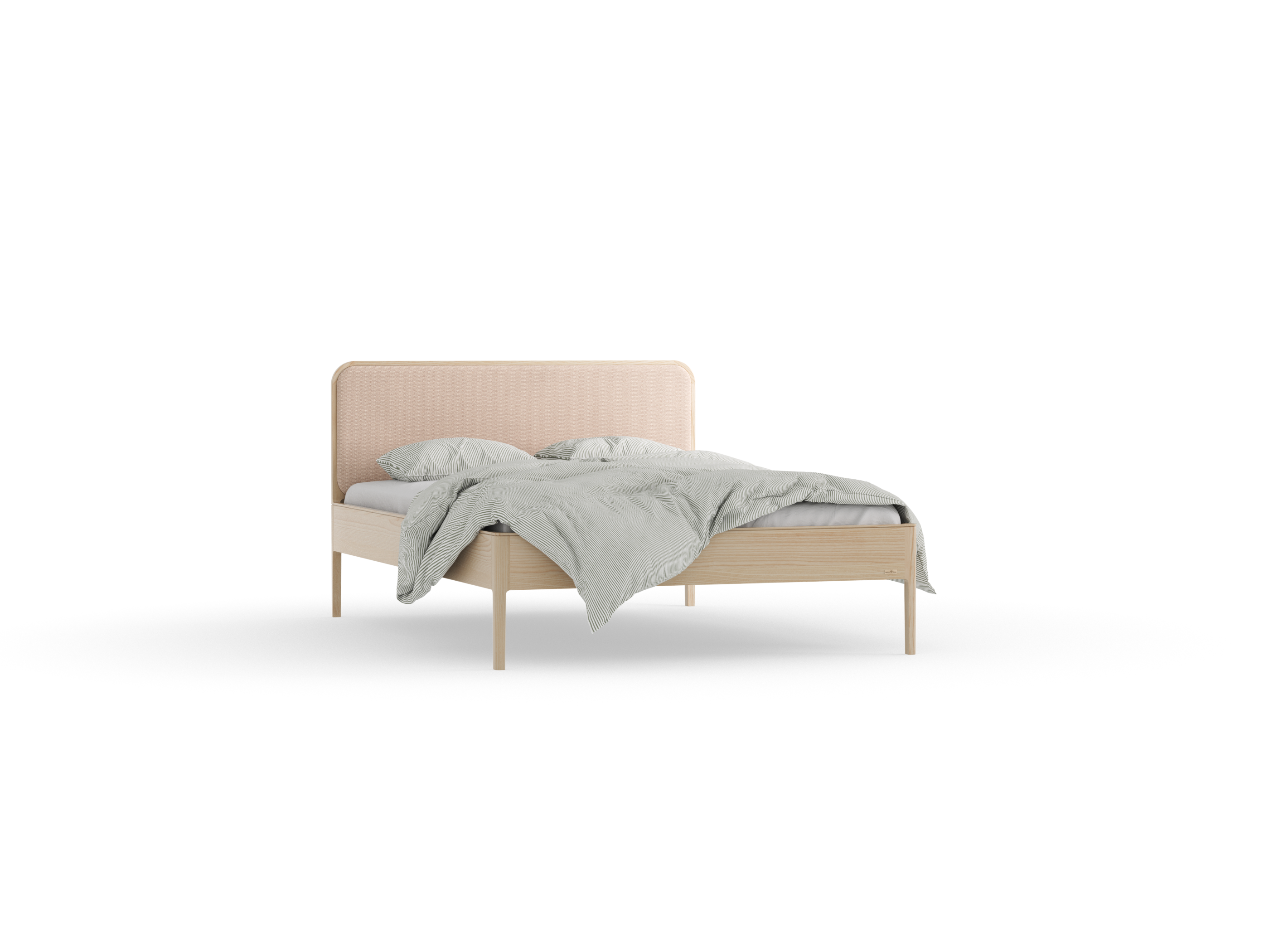 Bett Tenso mit Polsterbetthaupt, 140 x 200 cm, Wollstoff Elverum Haselnuss (74), Esche