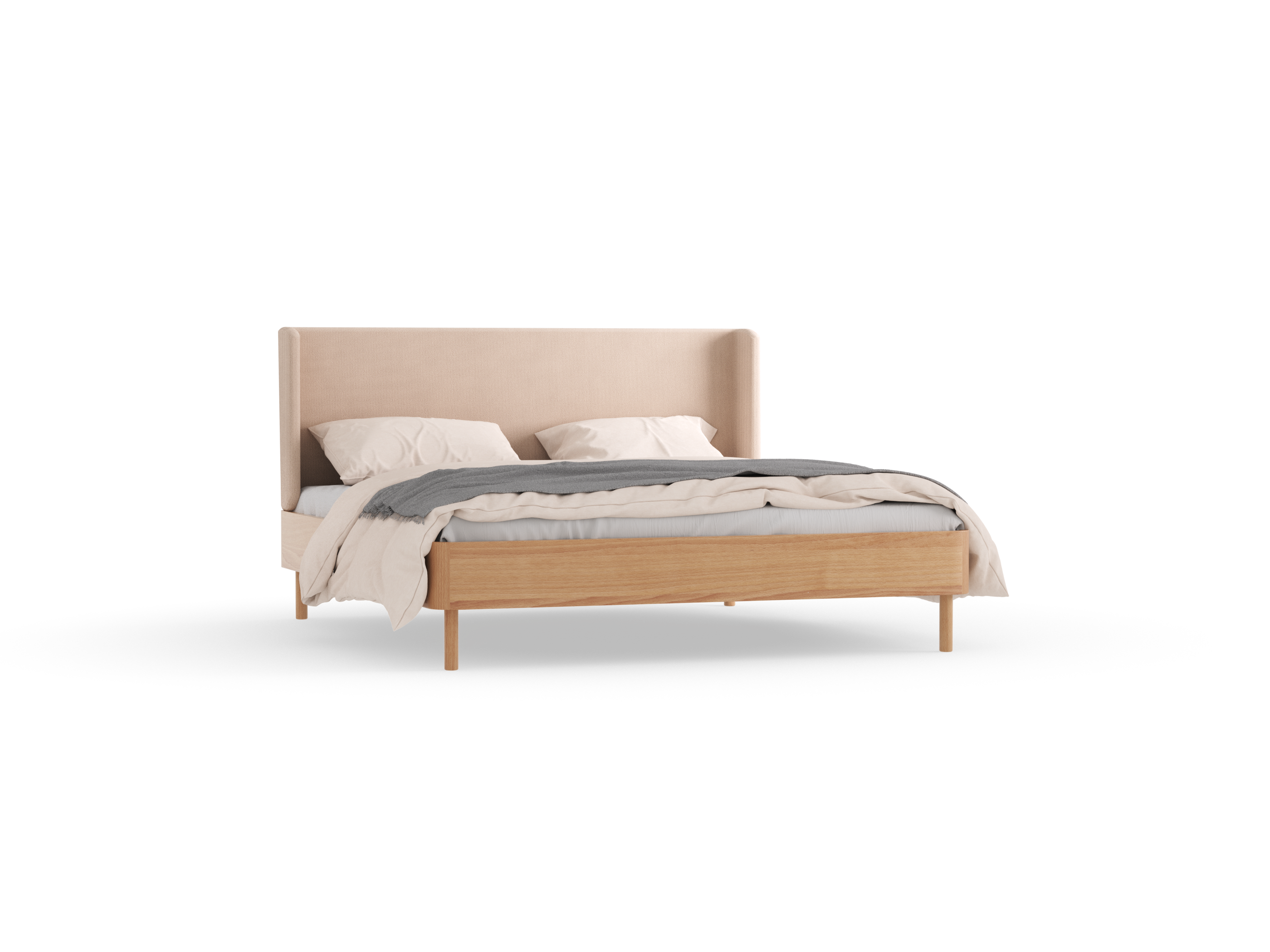 Harmonisch runde FormenDank nach innen versetzter Füße schwebender Charakter, harmonisch runde Formen und sanfte Eckradien: Die typischen Merkmale der gesamten Tonda-Möbelserie verbinden sich bei diesem Bett mit dem stilprägenden, nach innen gebogenen Polsterbetthaupt zu einem Geborgenheit schenkenden Ganzen. So wird der Schlaf in diesem Bett zum Genuss. Doch das bequeme, stabile Betthaupt von Tonda verheißt auch den Wachenden schöne Stunden, etwa beim Lesen.Material & FertigungWir fertigen das Bett aus mitteleuropäischem Massivholz: Buche, Eiche oder Zirbe. Betthaupt, Fußteil und Seitenwangen werden von passgenauen, bei Bedarf wieder lösbaren, metallfreien Holzsteckverbindungen (Lasche & Dübel) fest zusammengehalten. Die Holzoberfläche ist mit natürlichem, duftendem Pflegeöl eingelassen (Ausnahme: Zirbe bleibt unbehandelt).Zylindrische BettfüßeDie schlanken, zylindrischen Bettfüße lassen Tonda trotz des 21 cm hohen Bettrahmens optisch leicht erscheinen. Sie werden mit einem aus reißfestem Ahornholz gefertigten Gewinde an der Unterseite des Bettrahmens in ein ebenfalls hölzernes Gegengewinde gedreht: So etwas gibt’s nur in der Massivholztischlerei!Weiches, bequemes Betthaupt in 2 HöhenFür das bequeme Betthaupt wird eine Platte aus verwindungsfestem Pappelschichtholz in unserer Werkstätte mit weichem Kokoslatex und Schurwollfilz gepolstert, straff mit dem Möbelstoff Ihrer Wahl bezogen und mit sorgfältigen Nähten verarbeitet. So bietet das Bett nicht nur eine bequeme Lehne, etwa beim Lesen, sondern auch einen – wenn es frei steht – von allen Seiten schönen Anblick.Das Betthaupt kann in 2 Höhen gewählt werden: 68,5 cm (Gesamthöhe Bett 109 cm) oder 83,5 cm (Gesamthöhe 124 cm) – für hohe Matratzen wie unser Schlafsystem "Dreiklang".Individuelle LiegehöheDie Liegehöhe des Bettes lässt sich mithilfe unseres Höhenverstellungs-Sets um 3, 4, 5 oder 6 cm anheben – und damit Ihren individuellen Wünschen anpassen.