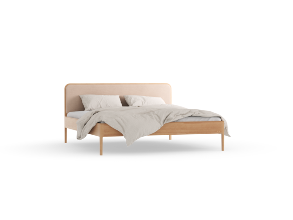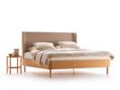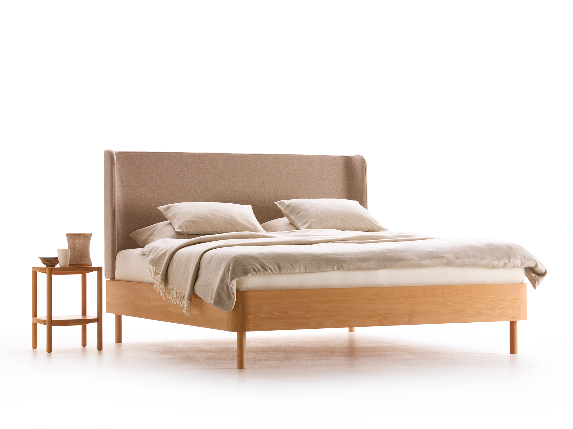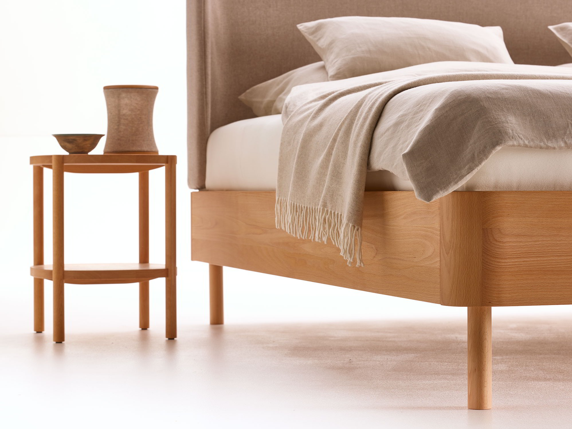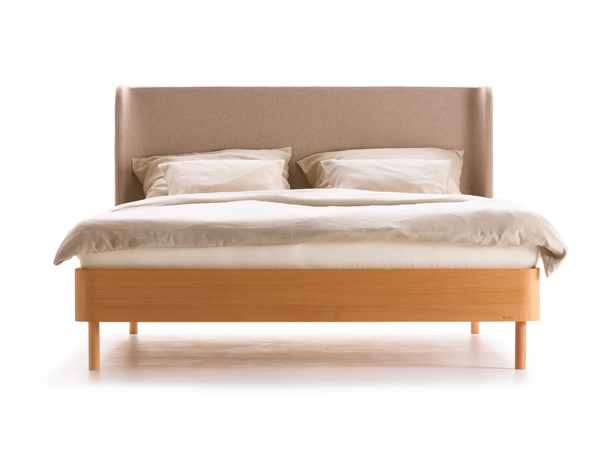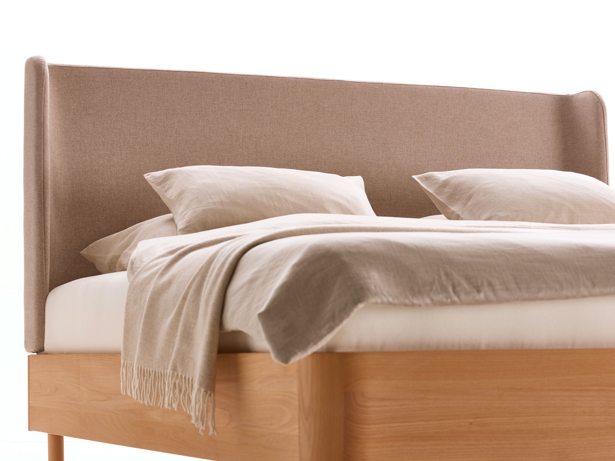 Harmonisch runde FormenDank nach innen versetzter Füße schwebender Charakter, harmonisch runde Formen und sanfte Eckradien: Die typischen Merkmale der gesamten Tonda-Möbelserie verbinden sich bei diesem Bett mit dem stilprägenden, nach innen gebogenen Polsterbetthaupt zu einem Geborgenheit schenkenden Ganzen. So wird der Schlaf in diesem Bett zum Genuss. Doch das bequeme, stabile Betthaupt von Tonda verheißt auch den Wachenden schöne Stunden, etwa beim Lesen.Material & FertigungWir fertigen das Bett aus mitteleuropäischem Massivholz: Buche, Eiche oder Zirbe. Betthaupt, Fußteil und Seitenwangen werden von passgenauen, bei Bedarf wieder lösbaren, metallfreien Holzsteckverbindungen (Lasche & Dübel) fest zusammengehalten. Die Holzoberfläche ist mit natürlichem, duftendem Pflegeöl eingelassen (Ausnahme: Zirbe bleibt unbehandelt).Zylindrische BettfüßeDie schlanken, zylindrischen Bettfüße lassen Tonda trotz des 21 cm hohen Bettrahmens optisch leicht erscheinen. Sie werden mit einem aus reißfestem Ahornholz gefertigten Gewinde an der Unterseite des Bettrahmens in ein ebenfalls hölzernes Gegengewinde gedreht: So etwas gibt’s nur in der Massivholztischlerei!Weiches, bequemes Betthaupt in 2 HöhenFür das bequeme Betthaupt wird eine Platte aus verwindungsfestem Pappelschichtholz in unserer Werkstätte mit weichem Kokoslatex und Schurwollfilz gepolstert, straff mit dem Möbelstoff Ihrer Wahl bezogen und mit sorgfältigen Nähten verarbeitet. So bietet das Bett nicht nur eine bequeme Lehne, etwa beim Lesen, sondern auch einen – wenn es frei steht – von allen Seiten schönen Anblick.Das Betthaupt kann in 2 Höhen gewählt werden: 68,5 cm (Gesamthöhe Bett 109 cm) oder 83,5 cm (Gesamthöhe 124 cm) – für hohe Matratzen wie unser Schlafsystem "Dreiklang".Individuelle LiegehöheDie Liegehöhe des Bettes lässt sich mithilfe unseres Höhenverstellungs-Sets um 3, 4, 5 oder 6 cm anheben – und damit Ihren individuellen Wünschen anpassen.