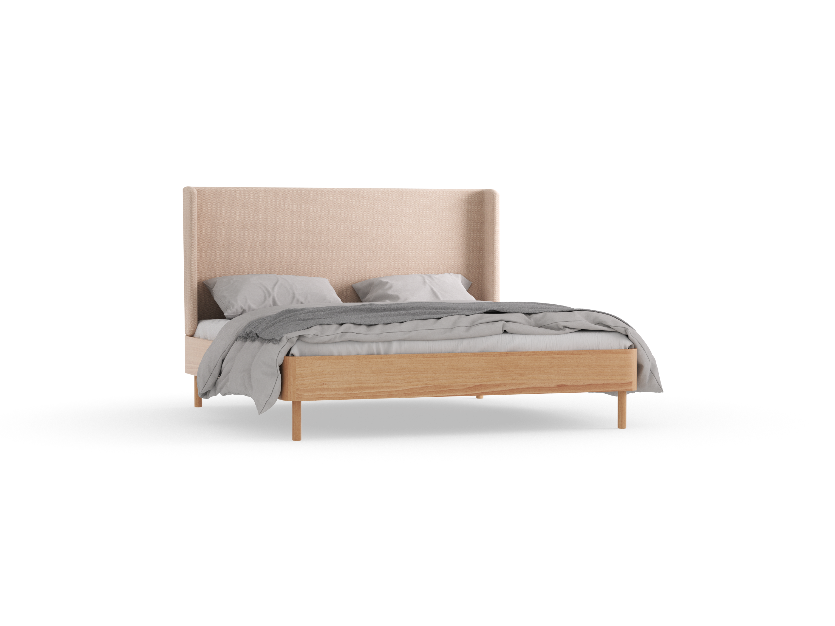 Bett Tonda, mit hohem Polsterbetthaupt, 180 x 200, Wollstoff Elverum Haselnuss (74), Buche