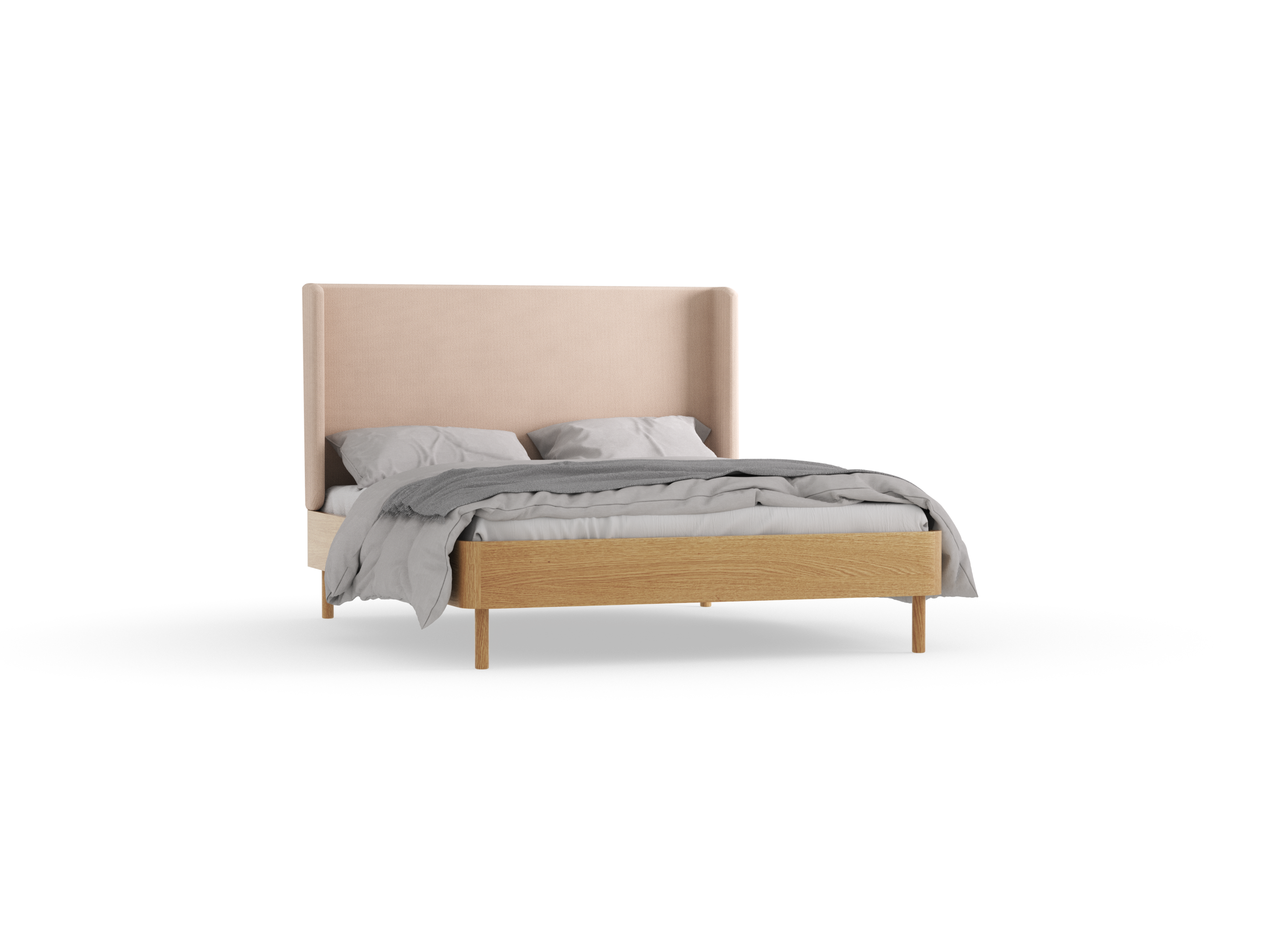 Bett Tonda, mit hohem Polsterbetthaupt, 160 x 200, Wollstoff Elverum Haselnuss (74), Eiche