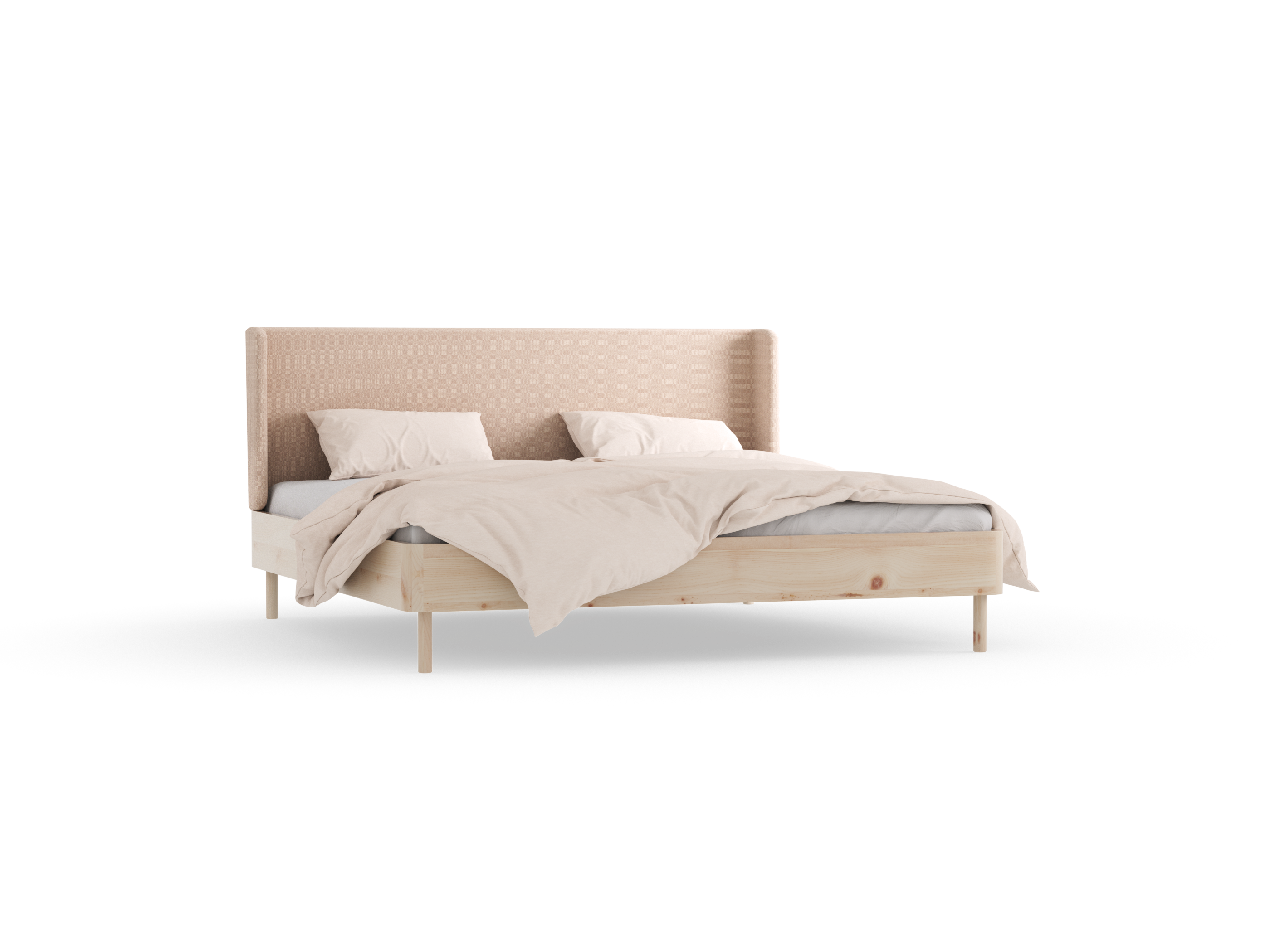 Bett Tonda, mit niedrigem Polsterbetthaupt , 200 x 210, Wollstoff Elverum Haselnuss (74), Zirbe
