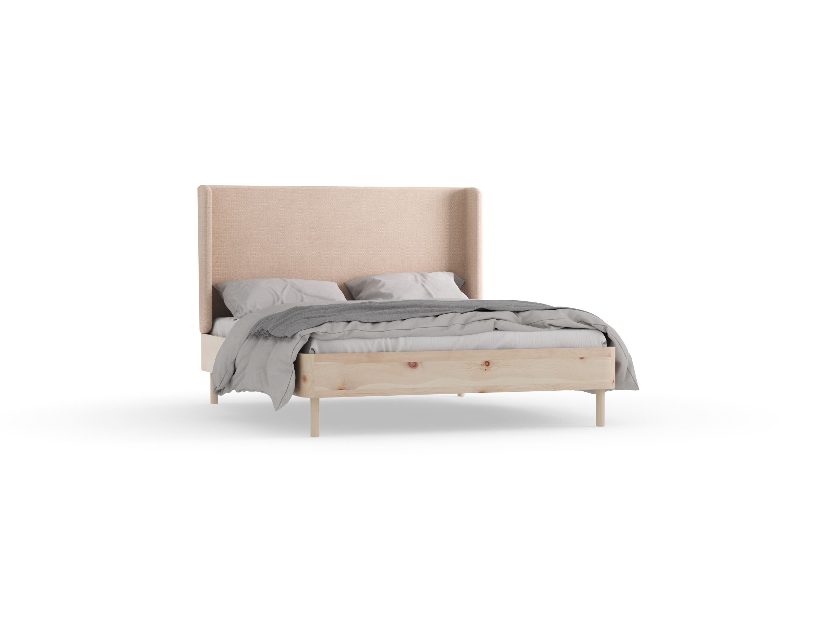 Bett Tonda, mit hohem Polsterbetthaupt, 160 x 200, Wollstoff Elverum Haselnuss (74), Zirbe