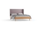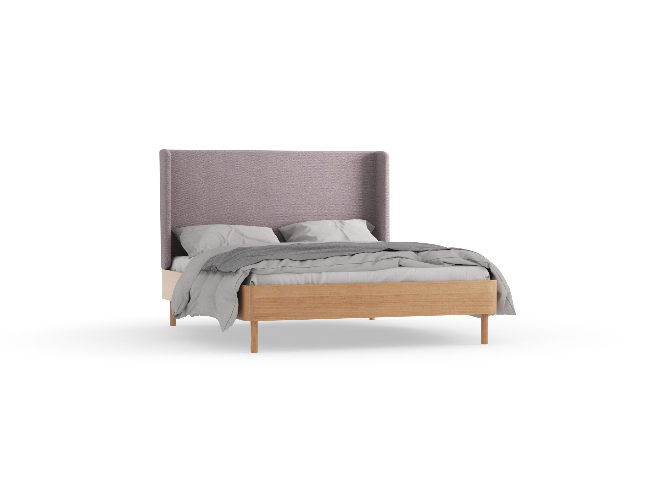 Bett Tonda, mit hohem Polsterbetthaupt, 160 x 200, Wollstoff Elverum Torfblau (82), Buche