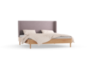 Bett Tonda, mit hohem Polsterbetthaupt, 200 x 200, Wollstoff Elverum Torfblau (82), Buche