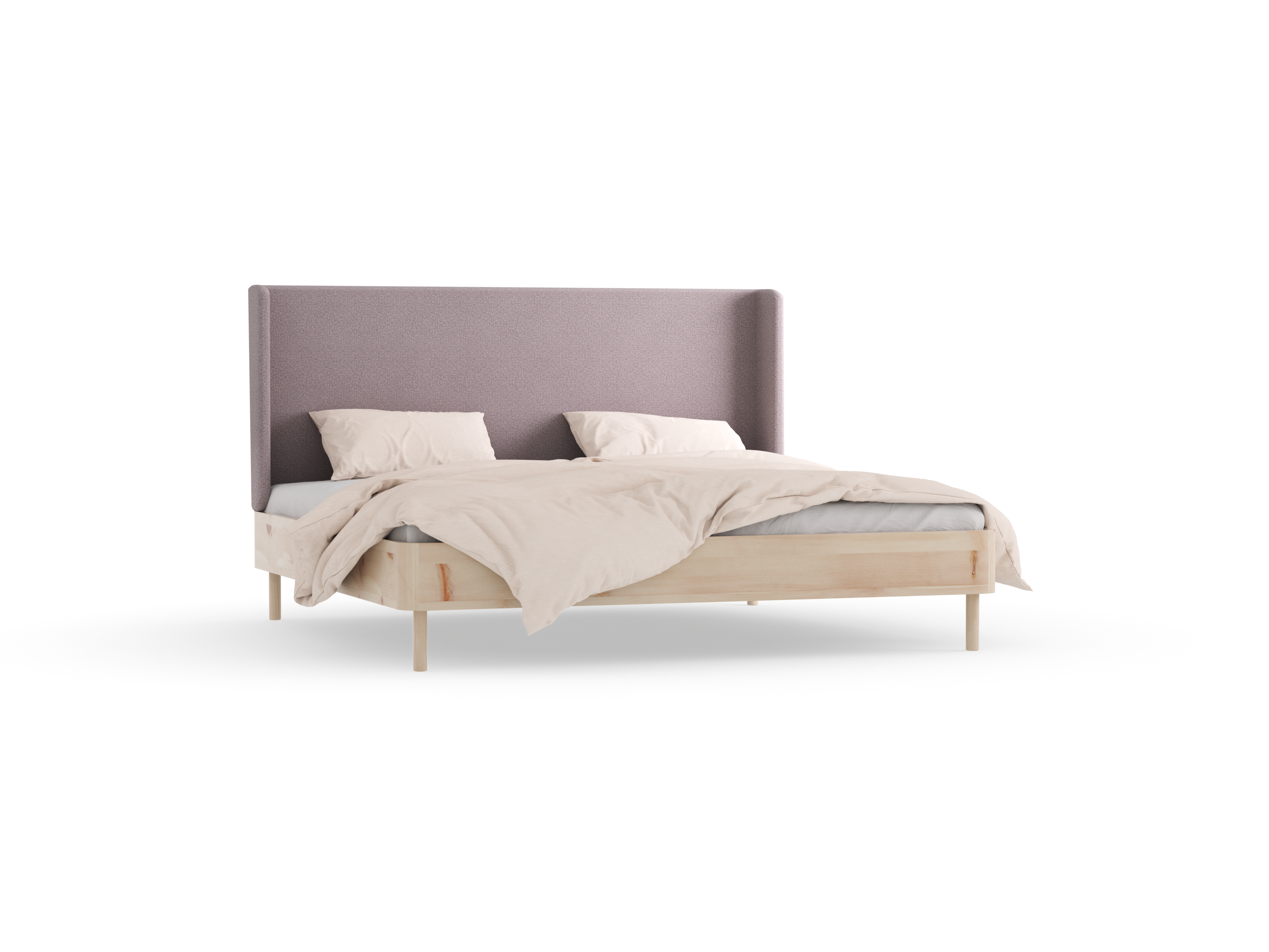 Bett Tonda, mit hohem Polsterbetthaupt, 200 x 200, Wollstoff Elverum Torfblau (82), Zirbe