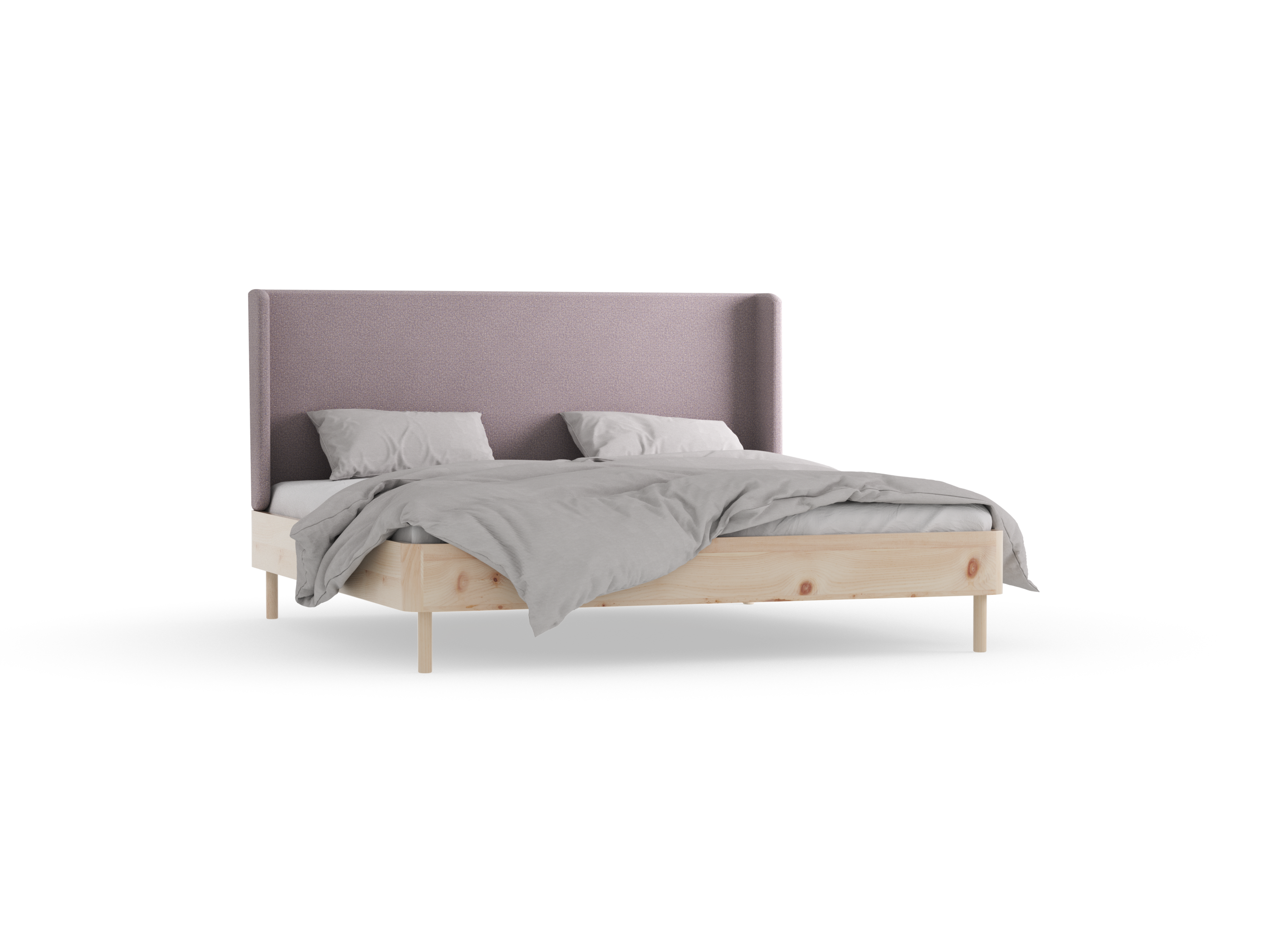Bett Tonda, mit hohem Polsterbetthaupt, 200 x 210, Wollstoff Elverum Torfblau (82), Zirbe