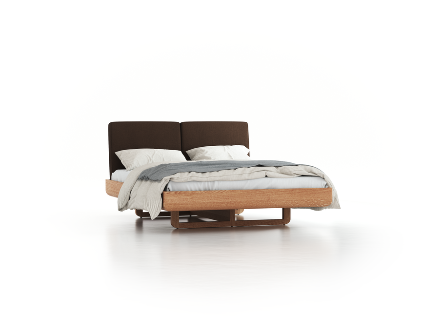 Bett Almara, 160 x 200 cm, mit Überzug Wollstoff Kaland Torf (70), Eiche