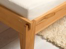 Fuß- und Kopfteil des Bettes werden mit den Seitenteilen über gut bedachte, passgenaue und fest sitzende, aber bei Bedarf wieder lösbare Dübelsteckverbindungen zusammengefügt – elementar einfache Konstruktionen, die ohne Metallteile auskommen.