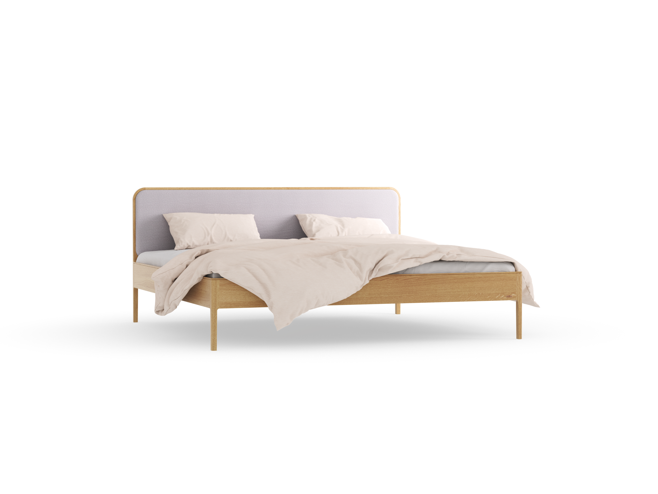 Bett Tenso mit Polsterbetthaupt, 200 x 200 cm, Wollstoff Stavang Kiesel (62), Eiche