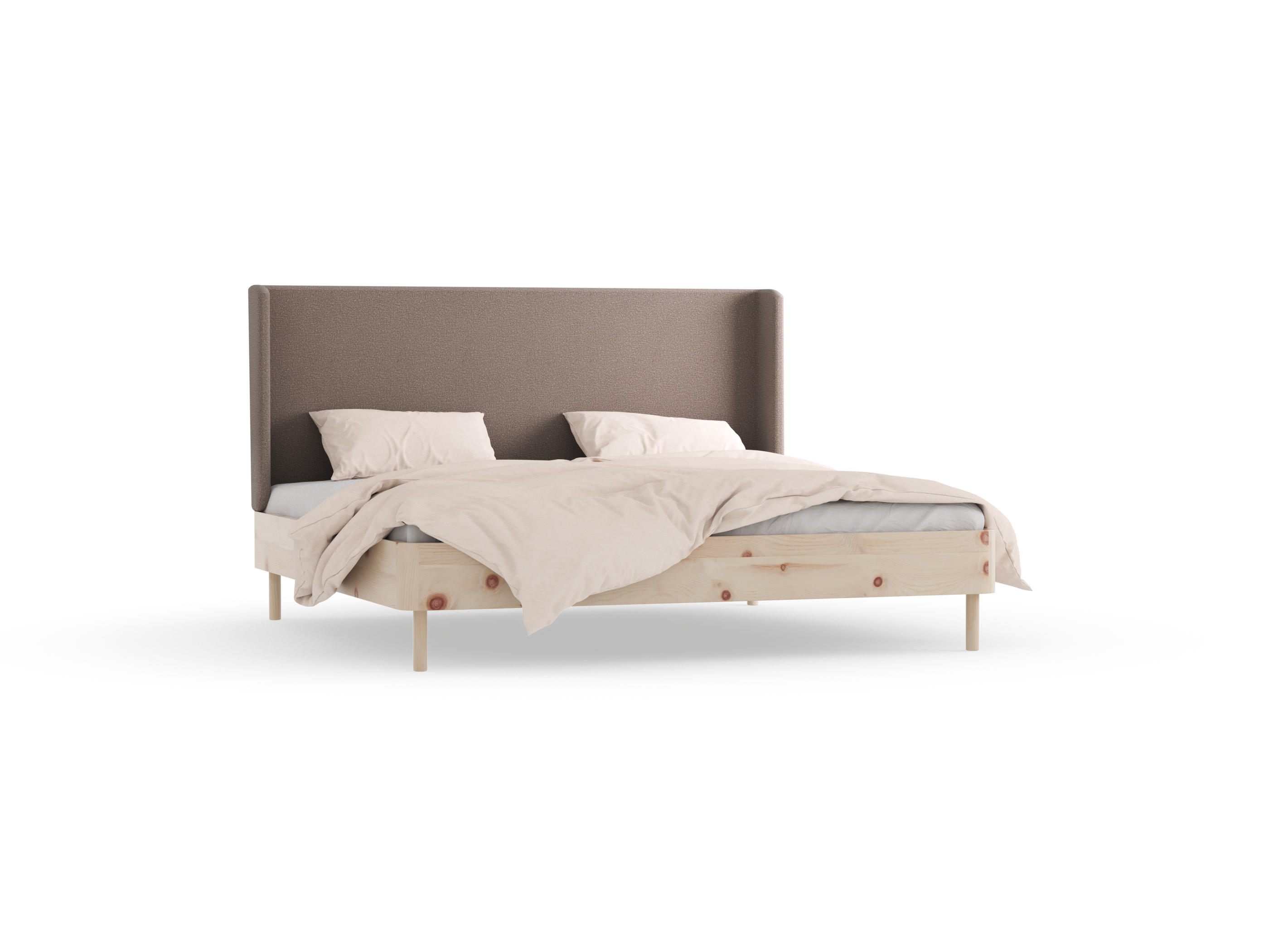 Bett Tonda, mit hohem Polsterbetthaupt, 200 x 200, Wollstoff Tano Natur Dunkel (81), Zirbe