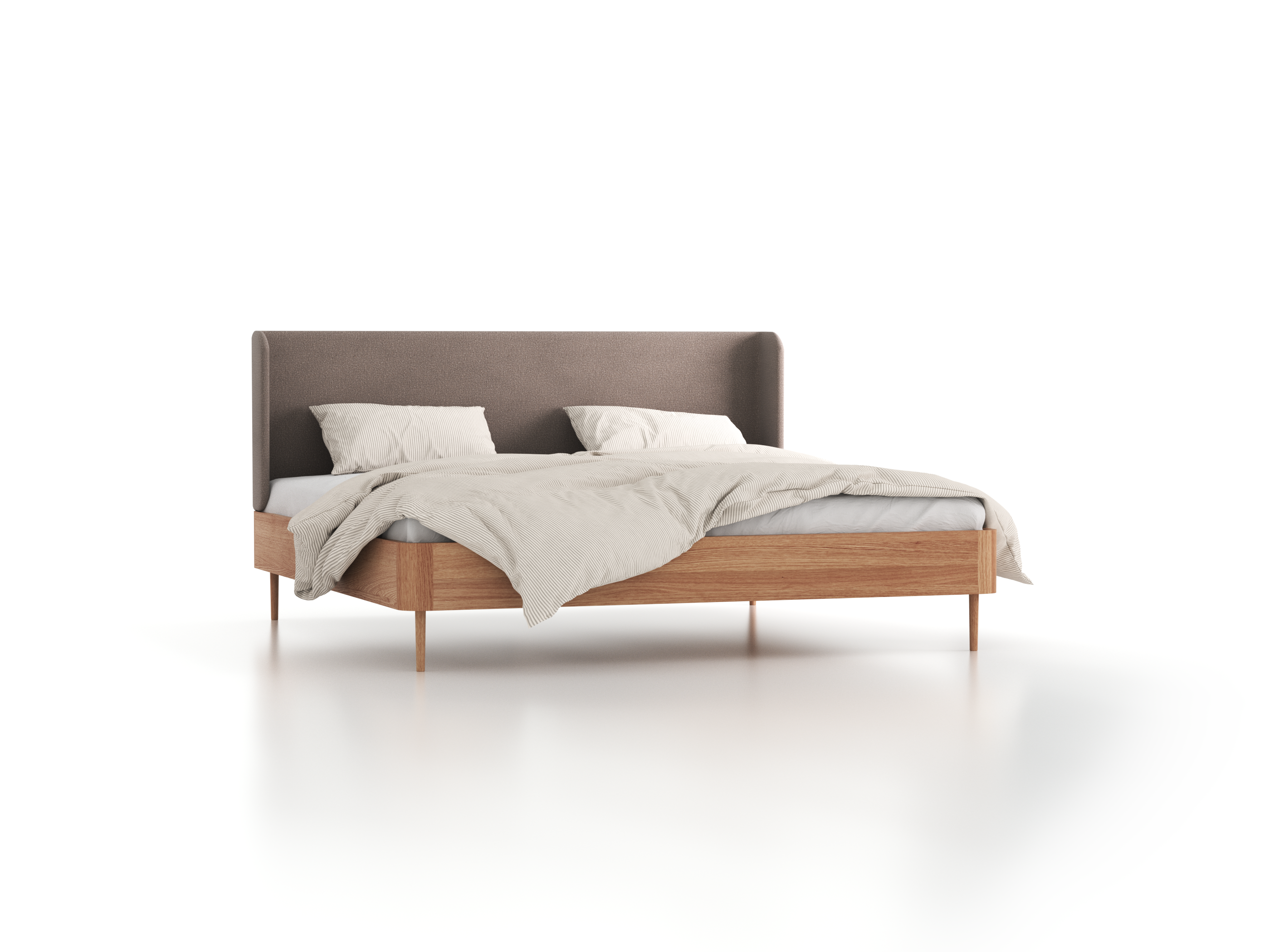 Bett Tonda mit Polsterbetthaupt, 200 x 200 cm, 19,5 cm, Wollstoff Tano Natur Dunkel (81), Eiche
