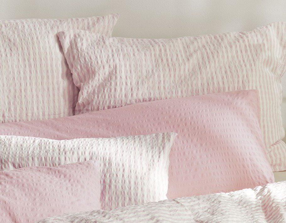 Feine Raffungen, zarte Farben und eine lockere Haptik: Eine Seersucker-Bettwäsche vermittelt durch ihre Einzigartigkeit ein ganz besonderes Schlafklima. Anders als am Markt verbreitet, erfolgt die Herstellung der Bettwäsche Orlando nicht chemisch, sondern durch die hochwertige Webart in unserem Partnerbetrieb in Vorarlberg. Die Kettfäden werden mit einer unterschiedlichen Spannung gewebt, wodurch die gerafften Längsstreifen entstehen und so für eine luftig, leichte und – wenn man möchte – bügelfreie Struktur sorgen.