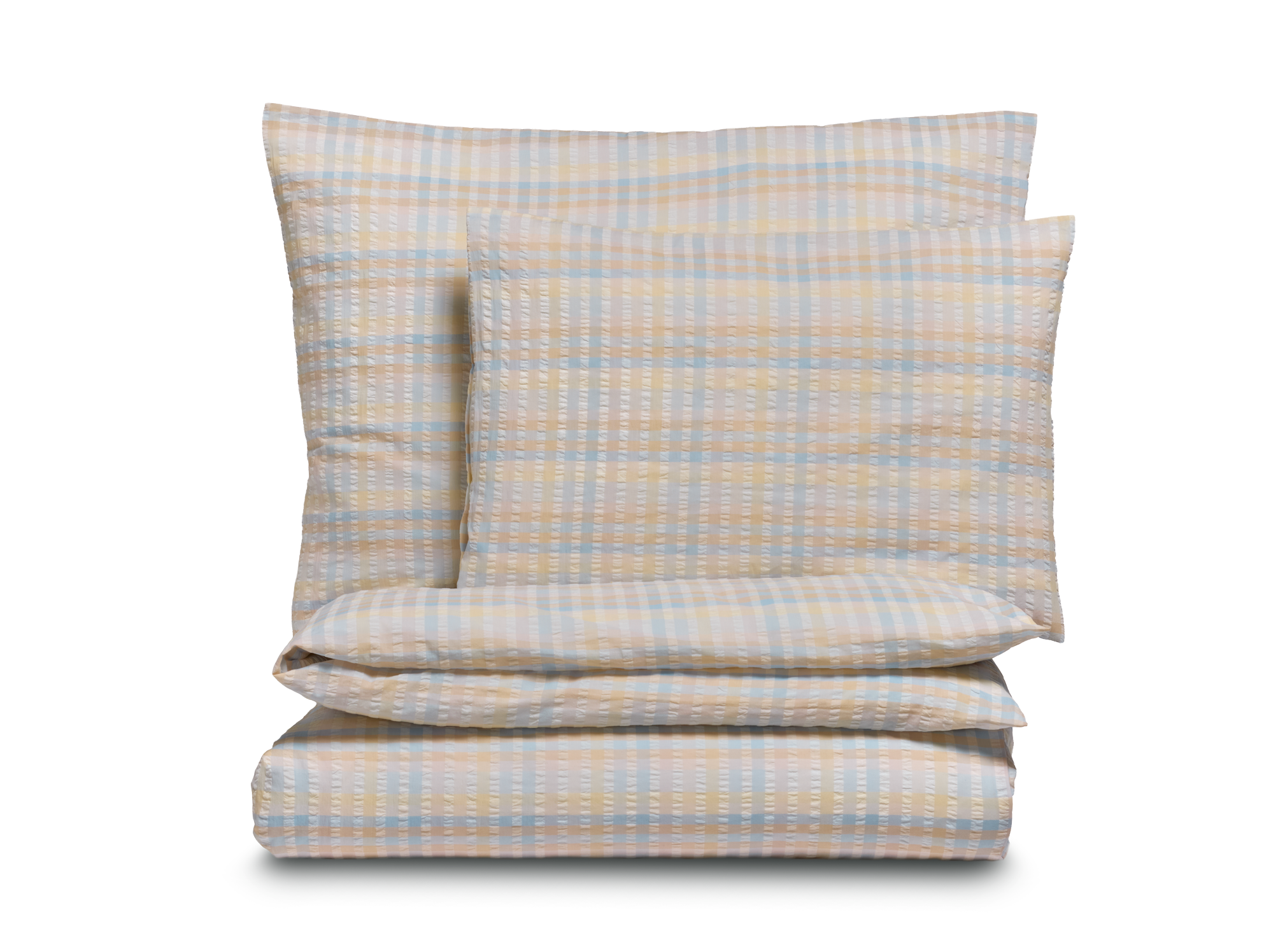 Die Bettwäsche Felia verleiht dem Schlafzimmer eine luftige Eleganz in sanften Pastelltönen. Das leichte, kreppartige Baumwollgewebe ist buntgewebt und zeigt eine dezent reliefartige Oberfläche, während die Streifen eine sanfte Karo-Optik bilden. Durch die spezielle Webtechnik – unterschiedliche Spannung der Kettfäden – bildet sich der charakteristische, wellenförmige Seersucker-Effekt.
