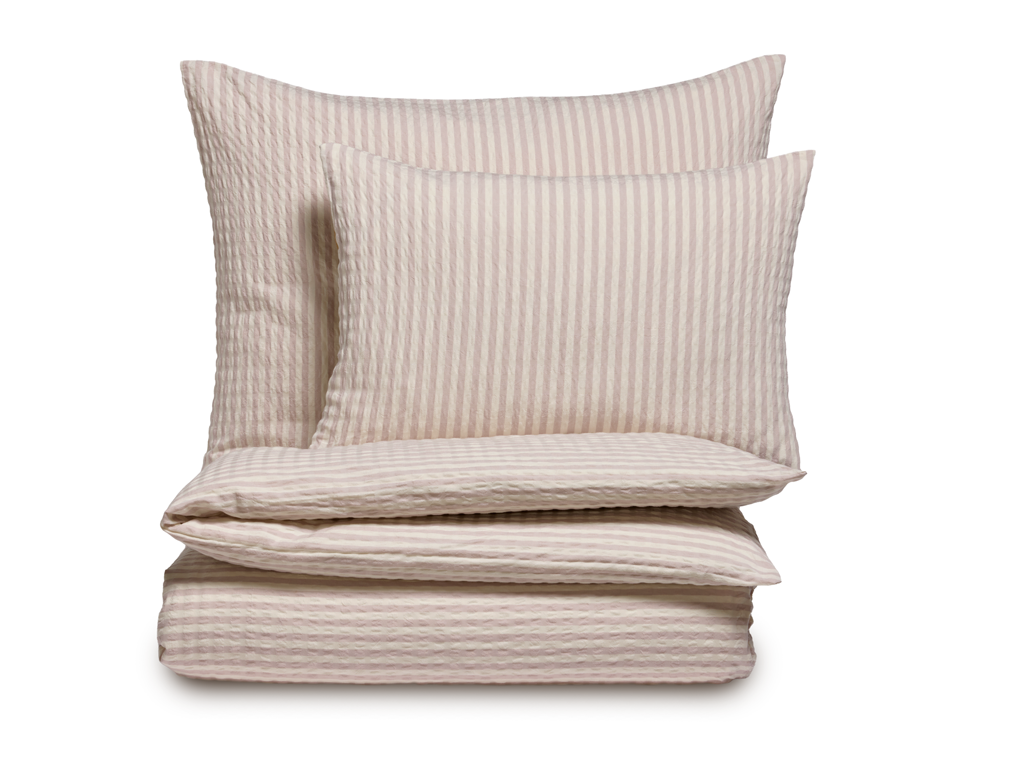 Die bügelfreie Bettwäsche Jakob überzeugt mit einer dezenten Streifen-Dessinierung und zeitloser Eleganz. Die charakteristische Seersucker-Struktur entsteht durch die unterschiedliche Spannung der Kettfäden beim Weben und sorgt in Verbindung mit der etwas höheren Grammatur für ein besonders stabiles, wertiges Schlafgefühl – zugleich luftig und atmungsaktiv.