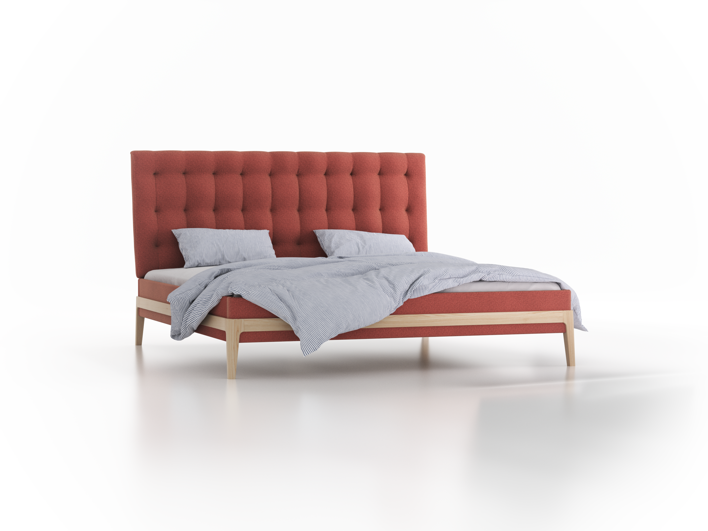 Polsterbett Filomena, 200 x 210 cm, mit Polsterbetthaupt, Wollstoff Kaland Ziegel (72), Esche
