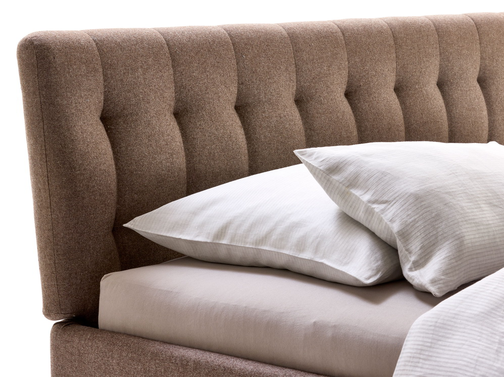 Schlafkomfort in seiner schönsten FormFilomena ist eine „klassische Schönheit“, ein elegantes Polsterbett, aus hochwertigen Naturmaterialien handwerklich meisterhaft gefertigt. Holz und Stoff ergänzen einander hervorragend und sind bis ins kleinste Detail harmonisch aufeinander abgestimmt.Das körperreiche Betthaupt und die Polsterung des Rahmens lassen Filomena rundherum optisch und haptisch weich erscheinen, wirken einladend, verheißen Komfort und Geborgenheit.Für den Betthauptbezug kann unter 20 NATURTEXTIL BEST-zertifizierten Möbelstoffen aus 100 % Schurwolle (Schaf) gewählt werden.Gemeinsam mit der 28 cm hohen Naturmatratze Paradiesische Wolke Premium bietet das Bett eine Liegehöhe von 60 cm, und damit Schlafkomfort auf „höchstem“ Niveau.