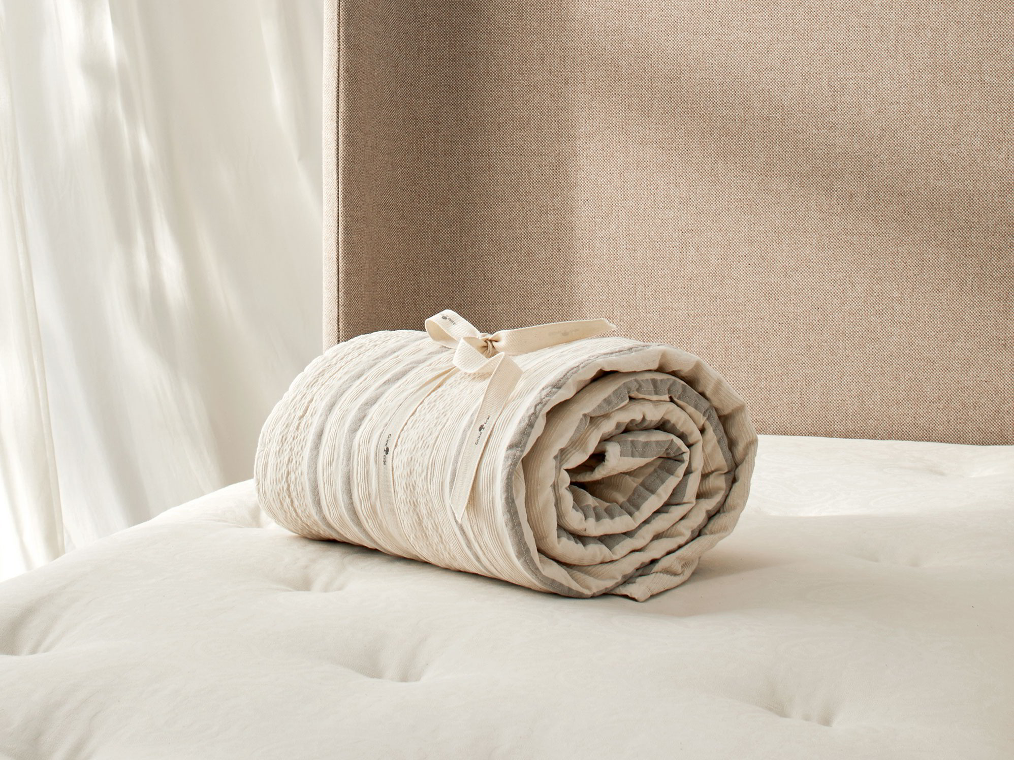 Schöne, leichte, elegante Sommerdecke mit einer Füllung aus hautfreundlicher Bio-Baumwolle und einem Baumwollbezug mit attraktiver Ripp-Optik.