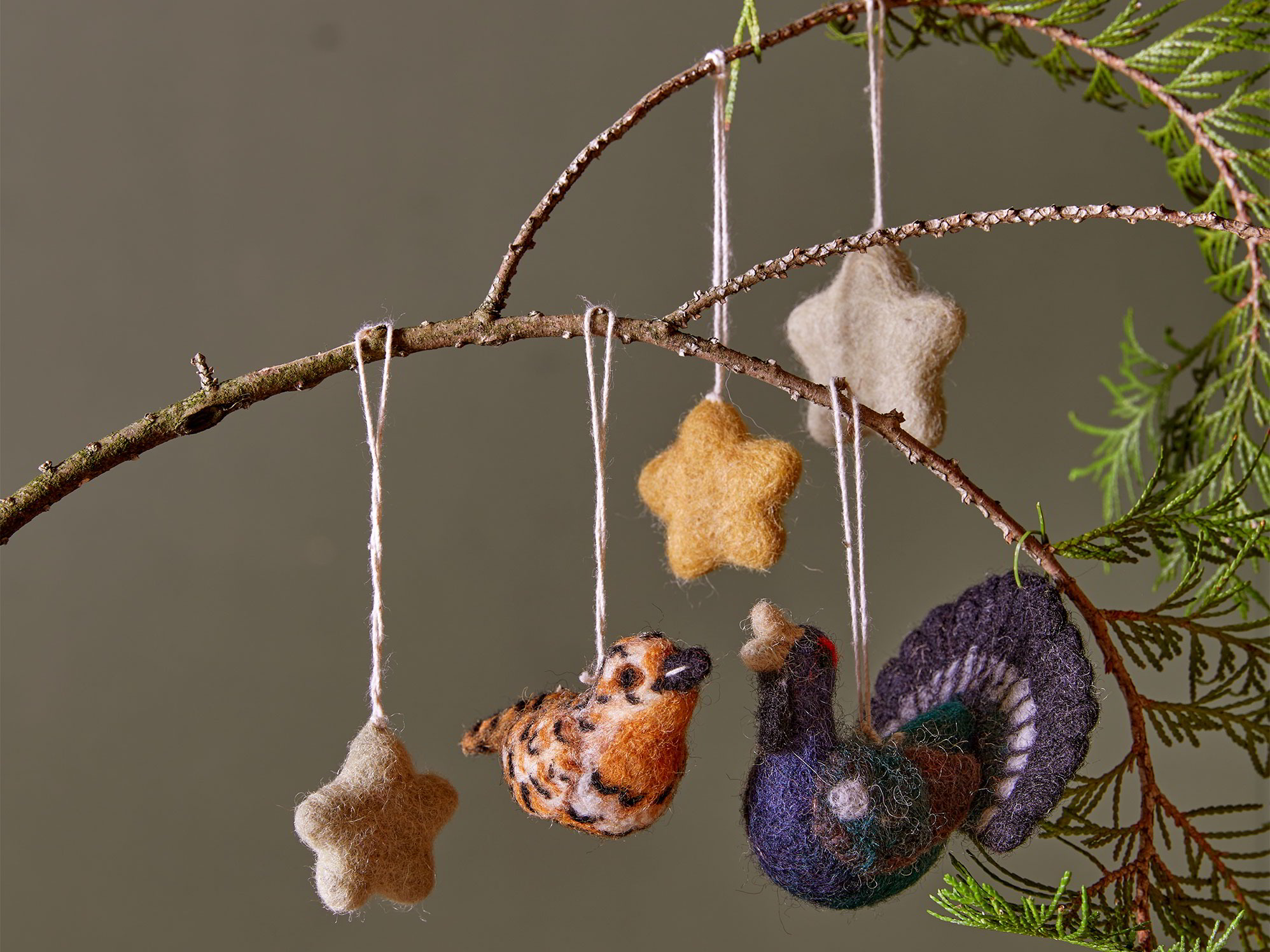 Ökologisch, sozial-fair und einzigartigDieser 6-teilige Weihnachtsschmuck wird in liebevoller und sorgfältiger Handarbeit im Rahmen eines sozialen Projektes in Nepal hergestellt. Aus reiner Schafschurwolle, mulesingfrei und ökologisch gefärbt. Die sternenförmigen Anhänger schaffen eine weihnachtlich, natürliche Atmosphäre und können sowohl als Christbaumschmuck als auch für Türkränze und sonstige kreative Dekorationsideen verwendet werden. Jedes Stück ist ein Unikat!Pflege: nicht waschbar.Verarbeitung: 100 % Schurwolle (Schaf). Schurwolle (Schaf) aus Neuseeland. Gefertigt in Nepal. -