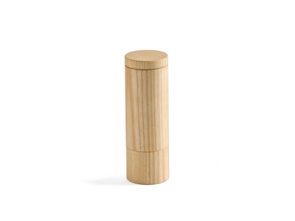 Gewürzdose mit Löffel, Erle natur, H 5 cm ø 5,5 cm