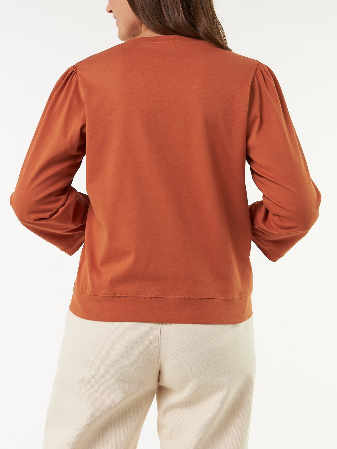 - Raffung an Schulter und Ärmelbündchen