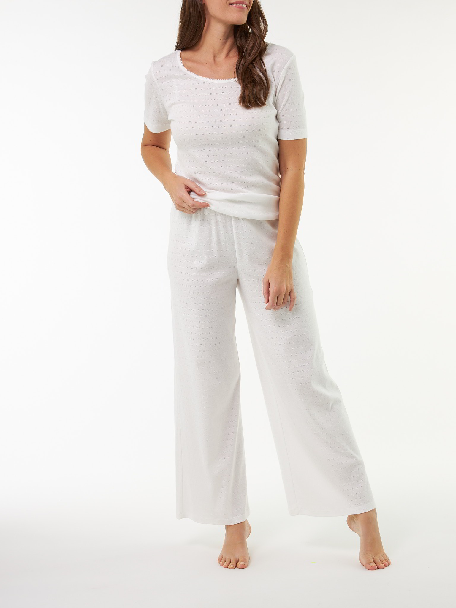 Für ein zartes Gefühl und eine feminine SilhouetteGarantiert ein Lieblingsstück: Schlafhose aus hochwertiger, weicher Baumwolle. Das Modell mit der feinen Ajour-Dessinierung überzeugt mit seiner zarten Optik und dem weichen Griff – garantiert ökologisch & sozial fair! Abgerundet mit Gummizug im Bund.Schnitt: weit/klassik/lang. Innenbeinlänge in Größe S (36/38) ca. 73 cm. Unsere Models sind zwischen 175 cm und 177 cm groß und tragen Kleidergröße S.Ökologisch & fair produziertEin schönes Stück Natur, welches wir nur zu gern tragen. Dieses Kleidungsstück entsteht aus Baumwolle kbA und wird nach strengen Richtlinien – wie dem Global Organic Textile Standard – bei unserem Partnerbetrieb gefertigt.Material: 100 % Baumwolle.Materialherkunft: Baumwolle kbA aus Griechenland. Gewirkt in Griechenland. Gefertigt in Bulgarien nach dem GOTS. -