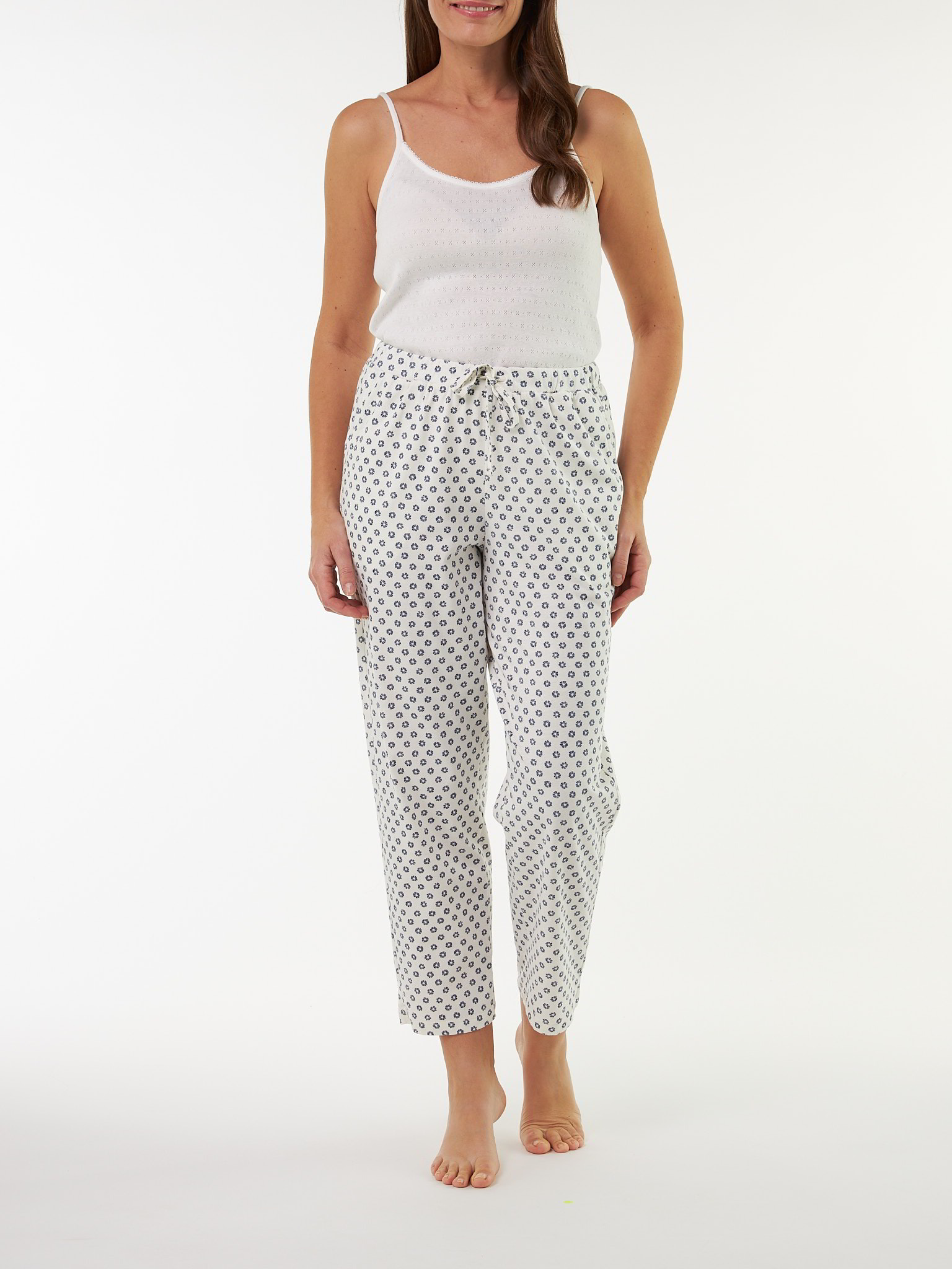 Zarte Farben kombiniert mit weicher Haptik: verkürzte Hose aus hautfreundlicher Baumwolle. Das locker geschnittene Modell mit schmal zulaufendem Bein hat einen Gummi- und Kordelzug im Bund, zwei seitliche Eingriffstaschen und kleine Seitenschlitze am Saum.