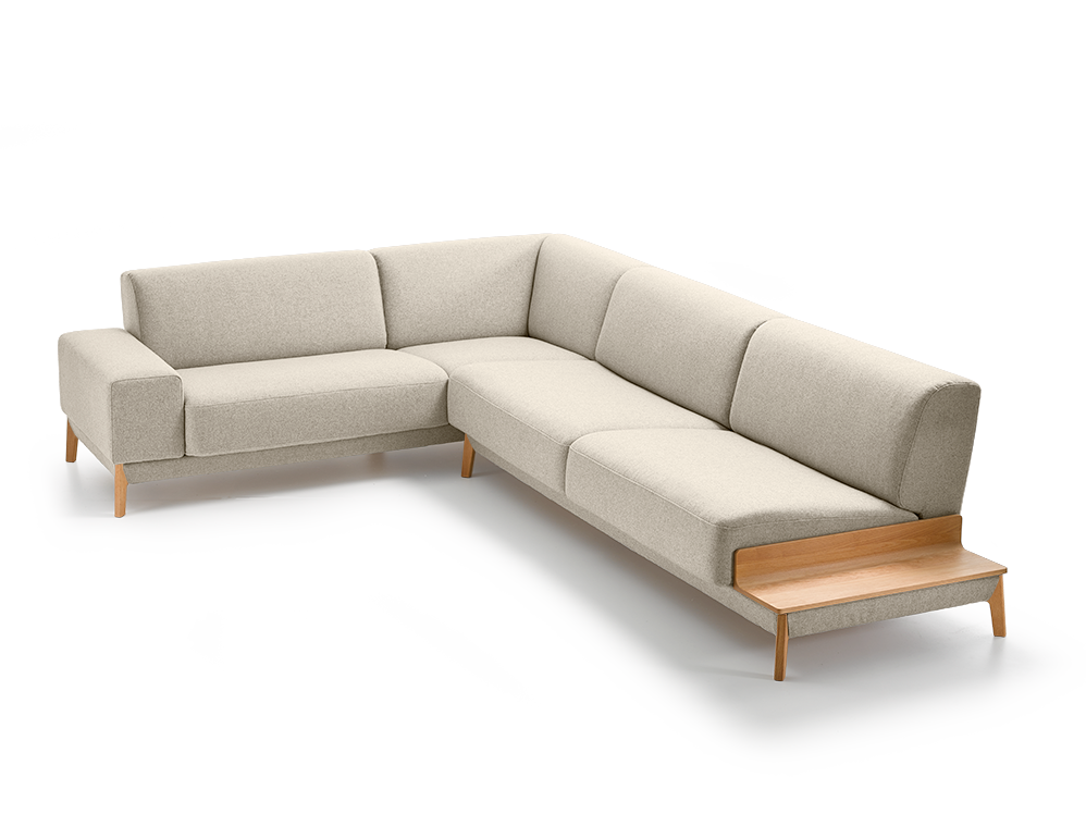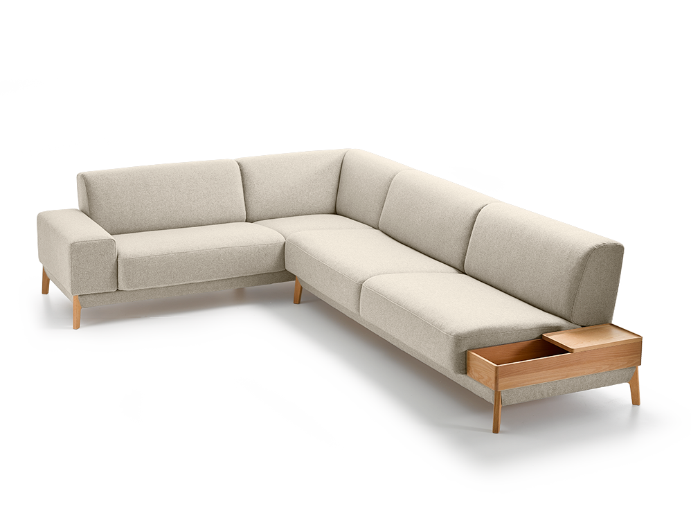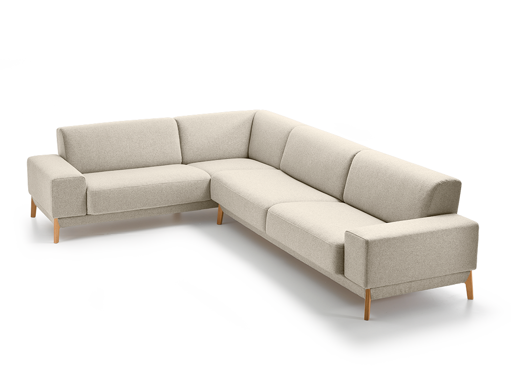 Ecksofa Alani, Buche, mit Bezug Wollstoff Tartini Sand